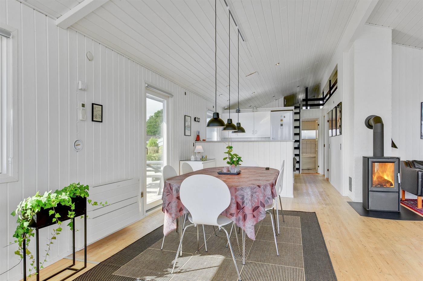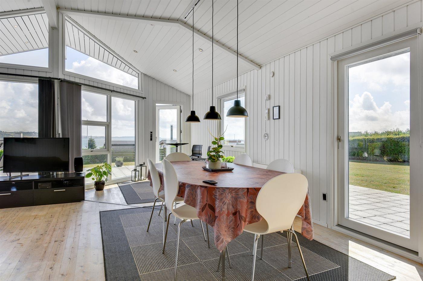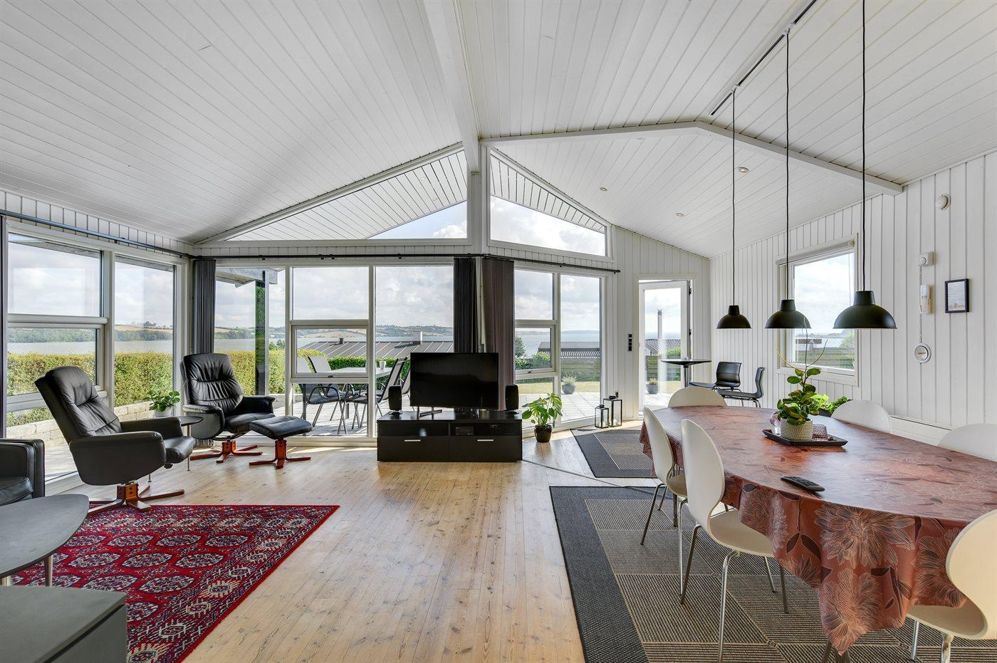 Et dejligt sommerhus på en højt beliggende grund med en skøn panoramaudsigt over vandet og Vemmingbund Bugt fra såvel hus som grund. Huset er ny renoveret i 2020. Huset er lyst og smagfuldt indrettet med kombineret køkken/opholdsstue og det er forsynet med al tænkelig komfort. En delvist overdækket terrasse omgiver huset. Fra sommerhuset er der kun 200 meter til Vemmingbund Strand, som er en familievenlig og dejlig badestrand.