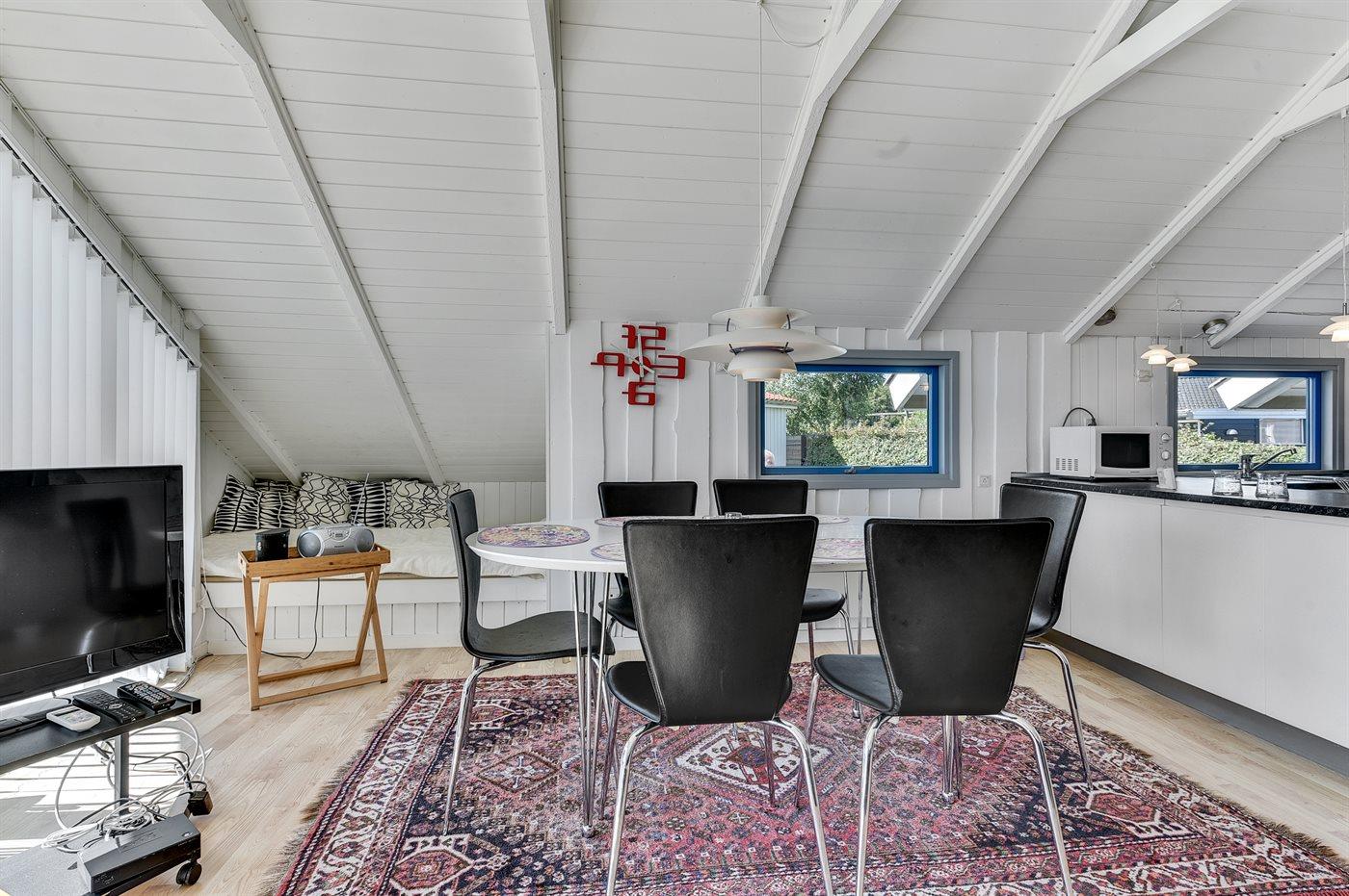 Det lyse og rummelige sommerhus ligger kun 50 m fra dejlig badestrand. Et stort vinduesparti mod syd giver et godt lysindfald samt mulighed for at nyde udsigten over vandet. 2 sovepladser befinder sig i alkove i opholdsstuen.