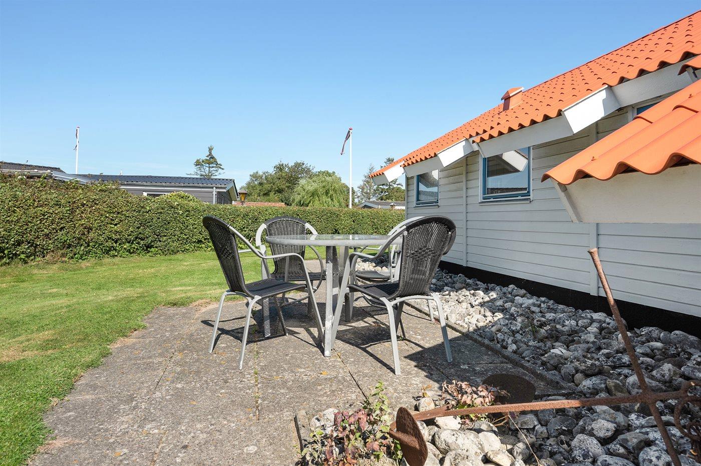 Ferieboligen er beliggende på en 697 m² stor havegrund. Der er 50 m til fjorden. Nærmeste forretning er beliggende i en afstand af 2000 m. Til ferieboligen hører 5 m² terrasseareal. Desuden er der 20 m² overdækket terrasse. Sandkasse. Grill til rådighed.