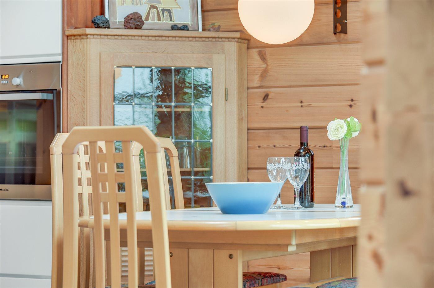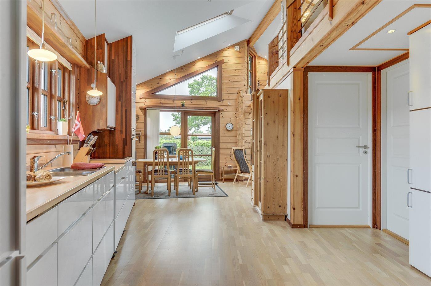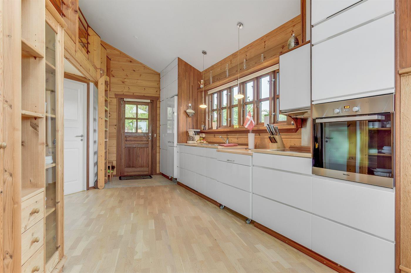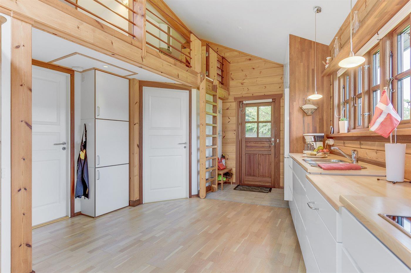 Køkkenet er udstyret med 1 køleskab. Der er 4 induktionskogeplader, varmluftovn, mikrobølgeovn samt opvaskemaskine.
