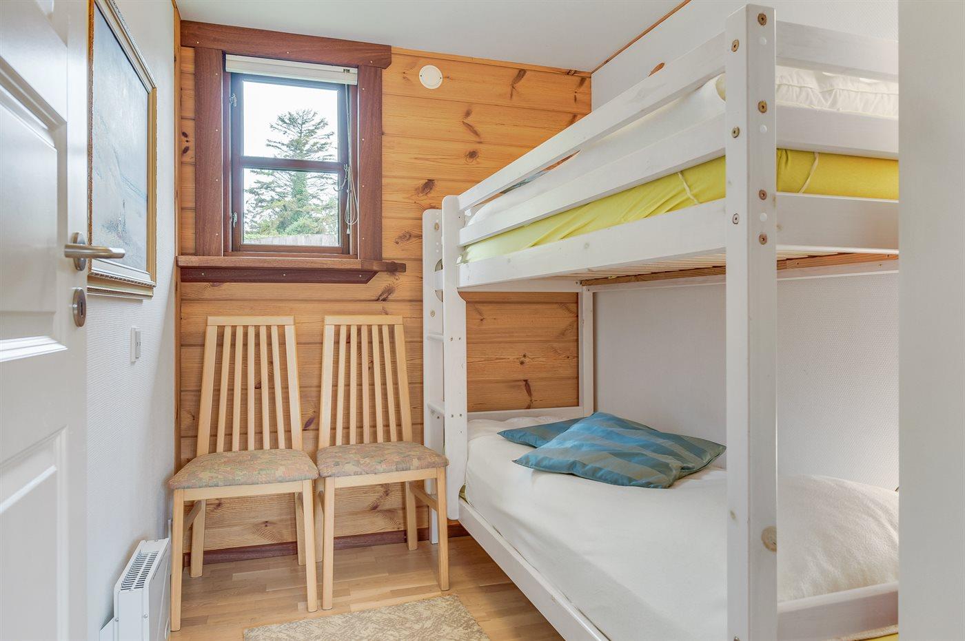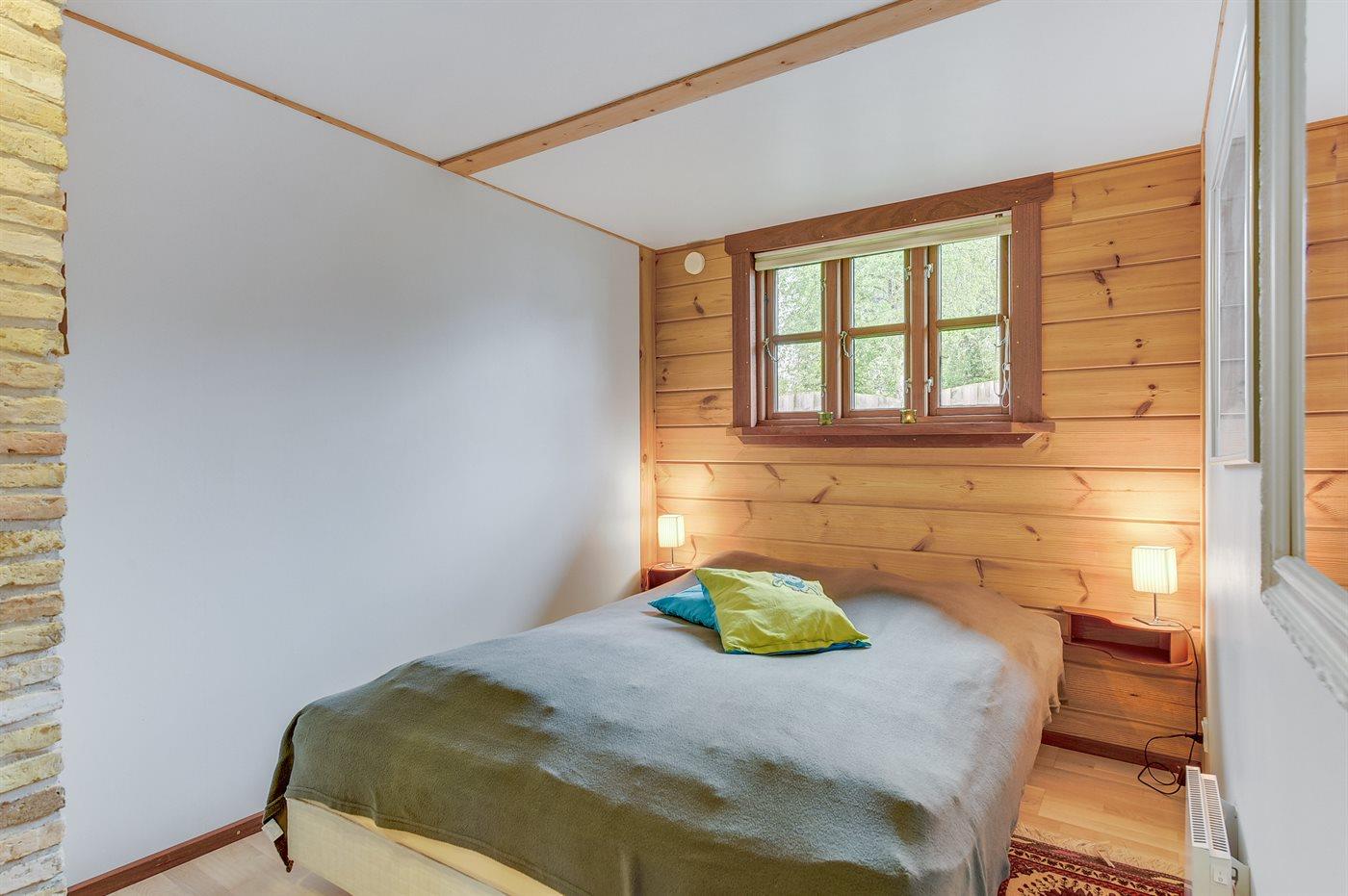 Der er i alt 2 soveværelser. Sovepladserne fordeler sig på: 2 sovepladser i dobbeltseng. 2 sovepladser i køjeseng. 2 sovepladser på madrasser. 2 af disse sovepladser befinder sig på husets hems. Derudover er der 1 stk. barneseng.