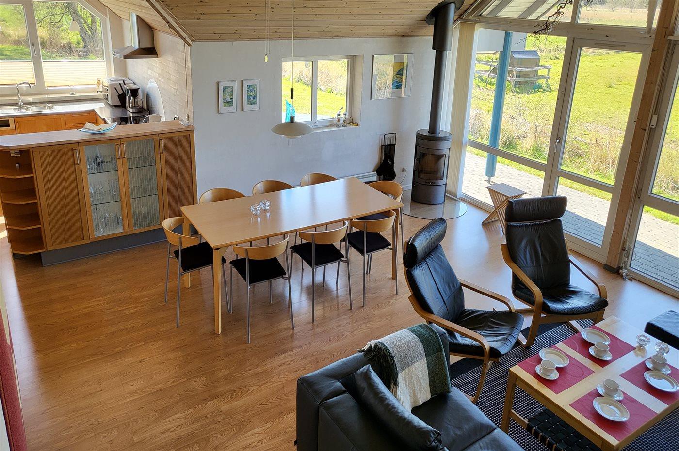 Sommerhuset egner sig til 8 personer samt 1 barn op til 3 år. Det er på 109 m² og er bygget i 2003. Ferieboligen er udstyret med energibesparende varmepumpe. Den indeholder desuden vaskemaskine, tørretumbler, stort kølefryseskab med frysekapacitet på 60 liter samt en brændeovn. Til de små er der en høj stol og en barneseng.