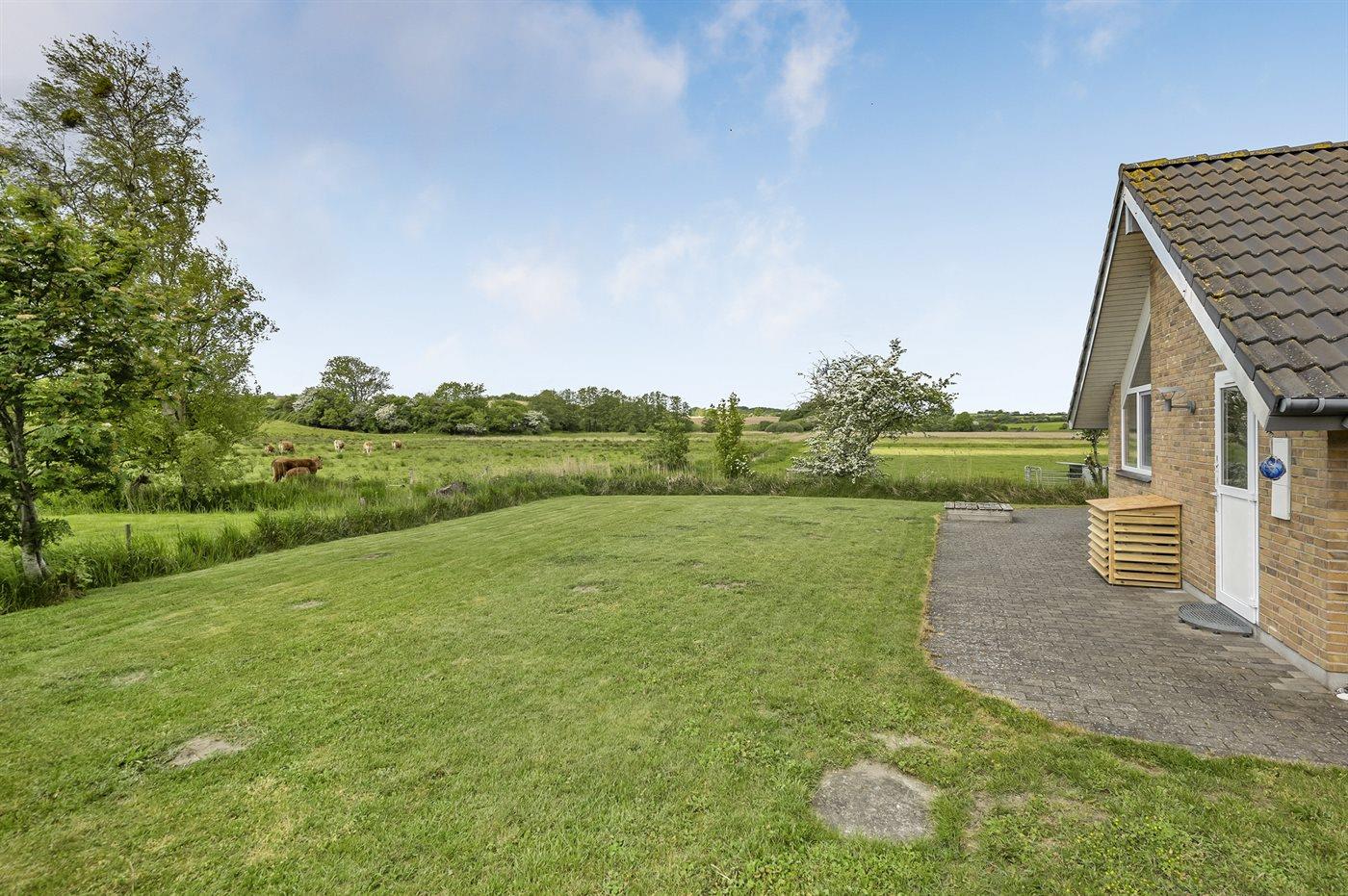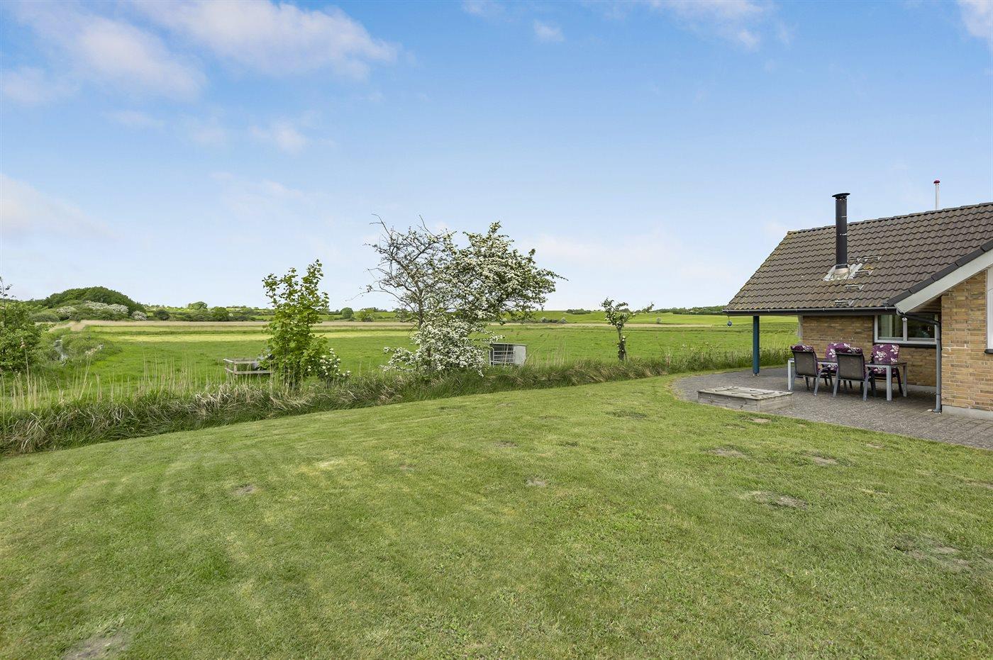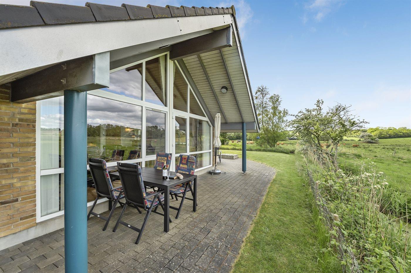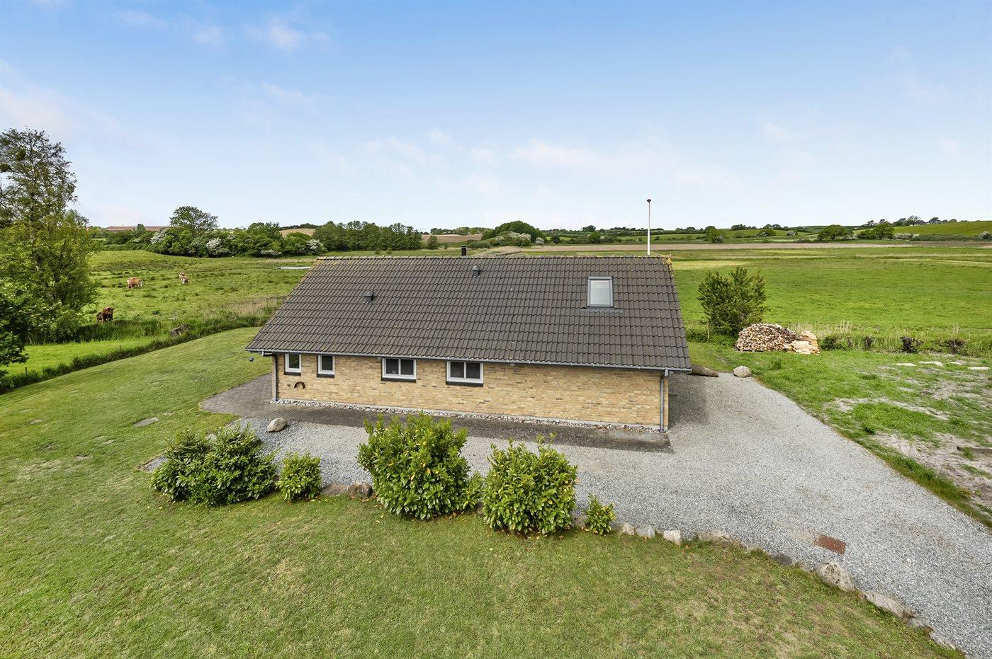 Dejligt, rummeligt sommerhus med en lys indretning med stort vinduesparti mod vest med en unik udsigt over fredet eng med et rigt fugleliv. Huset ligger for enden af en lukket vej lige ved skøn, børnevenlige strand. Alle værelser er forsynet med udvendige myggenet.