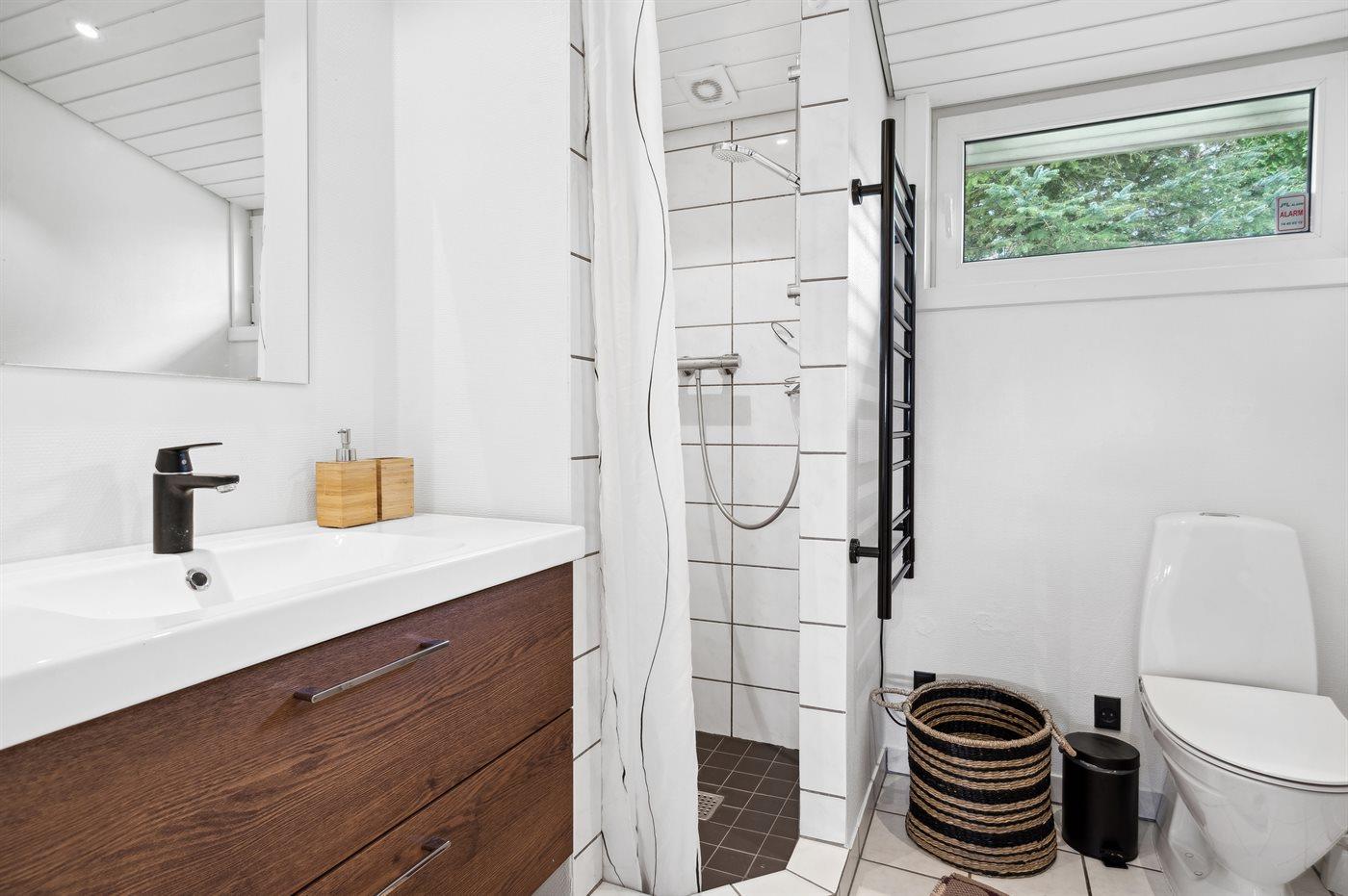 Der er 1 badeværelse med bruseniche og 1 toilet.. Der er gulvvarme på 1 badeværelse.