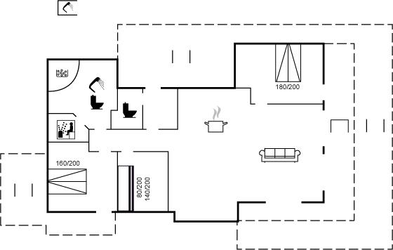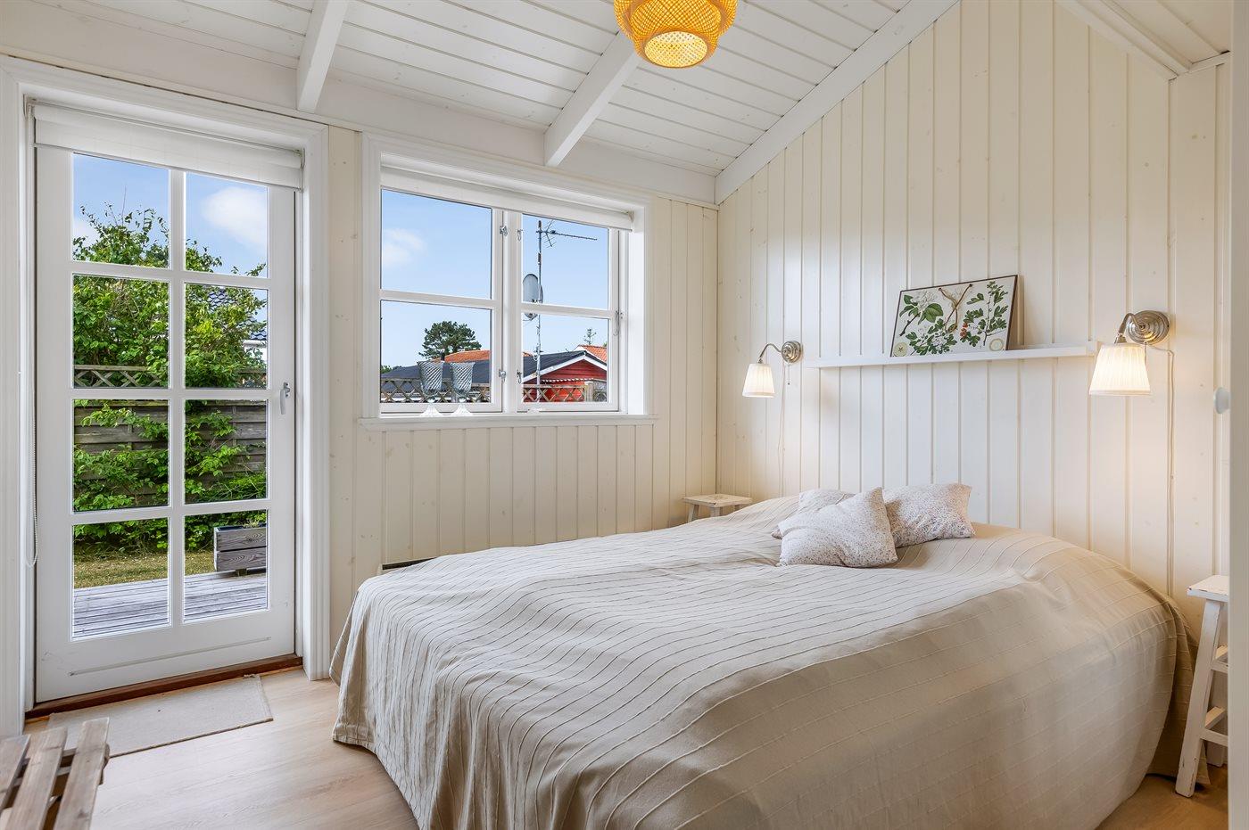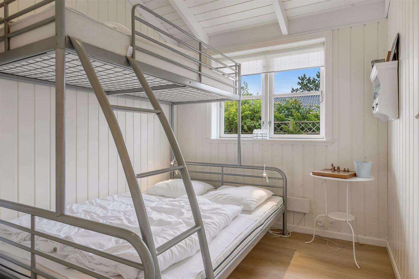 Der er i alt 3 soveværelser. Sovepladserne fordeler sig på: 4 sovepladser i dobbeltsenge. 3 sovepladser i køjesenge. 2 sovepladser på madrasser. 2 af disse sovepladser befinder sig på husets hems. Derudover er der 1 stk. barneseng.