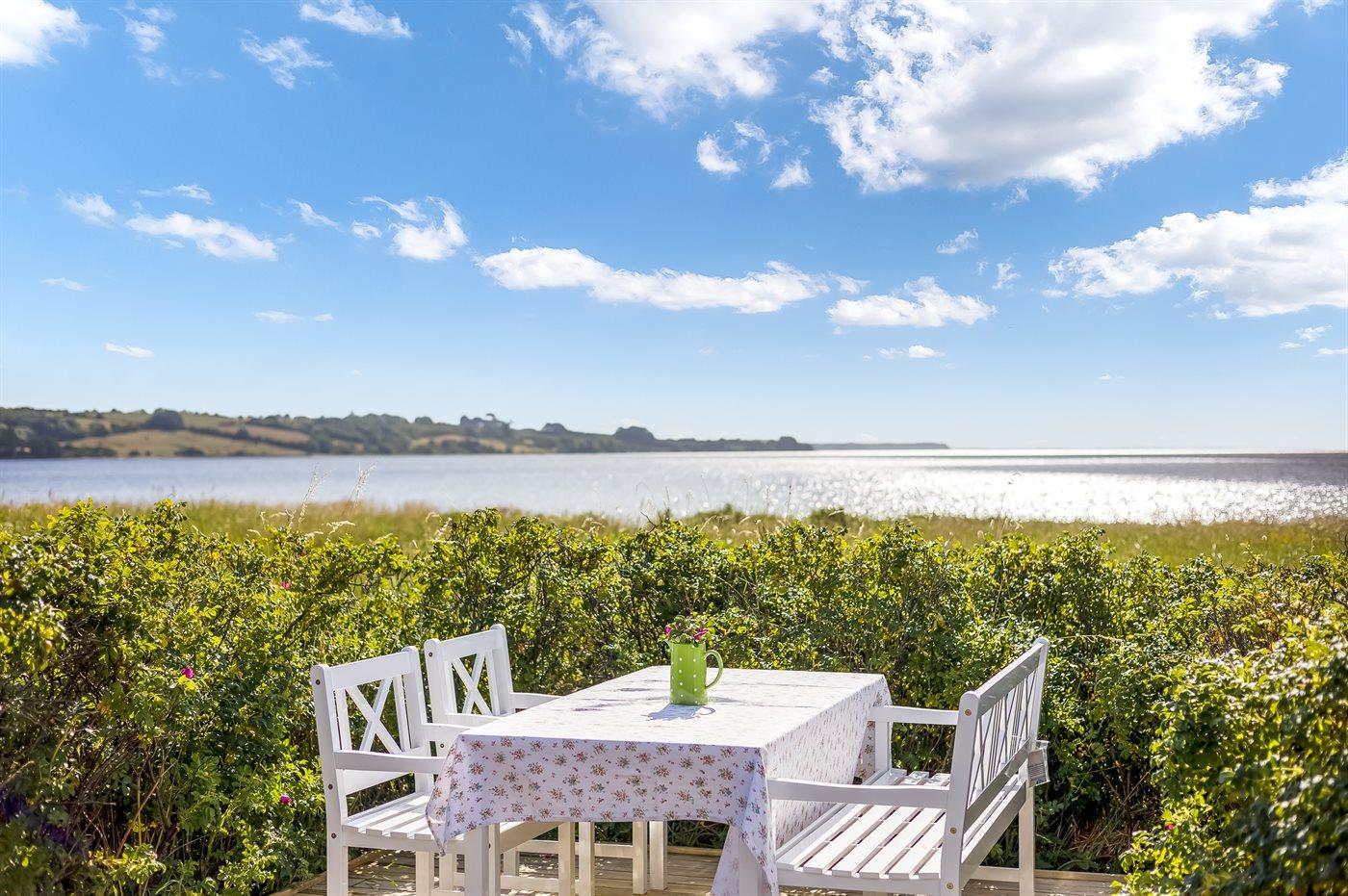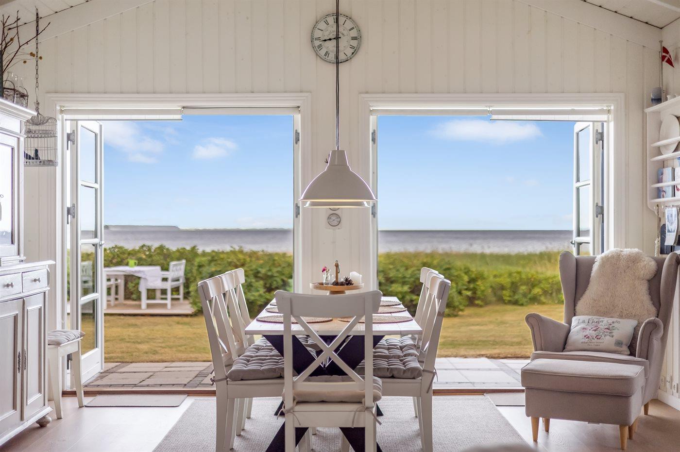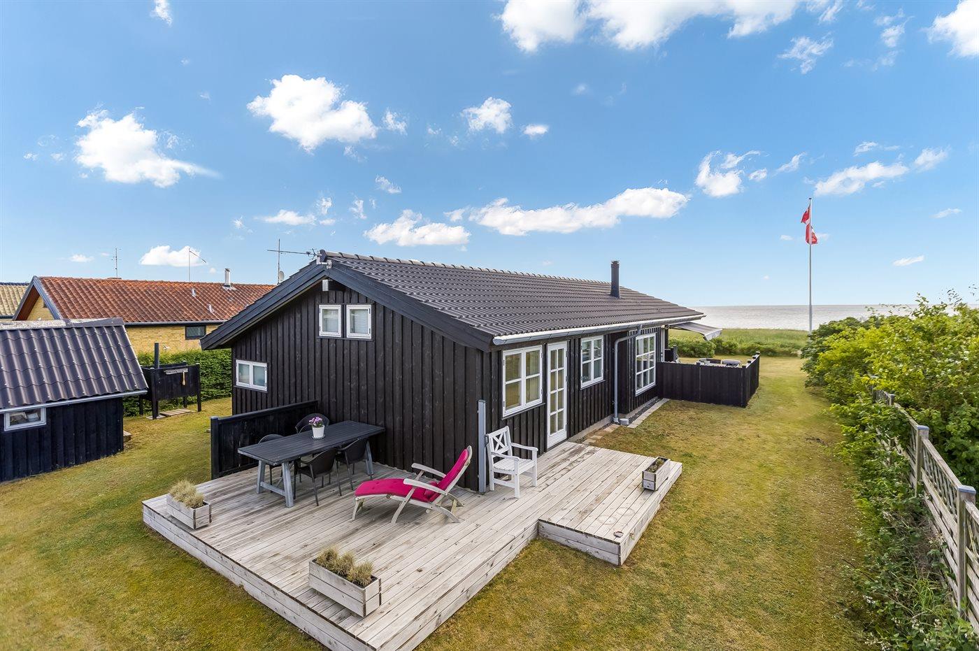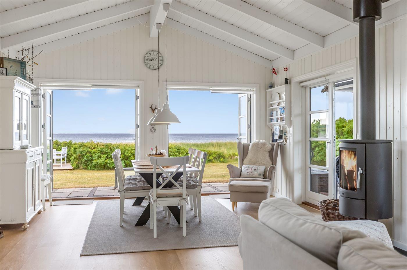 Dejligt sommerhus beliggende i første række, 20 m fra sandstranden i Vemmingbund. Fra hus og grund er der panoramaudsigt over vandet.