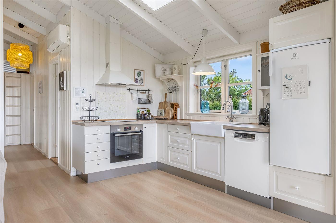 Køkkenet er udstyret med 1 køleskab. Der er 4 induktionskogeplader, varmluftovn, mikrobølgeovn samt opvaskemaskine.
