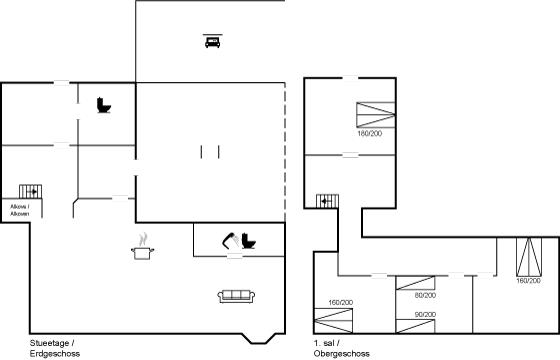 Der er i alt 4 soveværelser. Sovepladserne fordeler sig på: 6 sovepladser i dobbeltsenge. 2 sovepladser i enkeltsenge. Derudover er der 1 stk. barneseng.