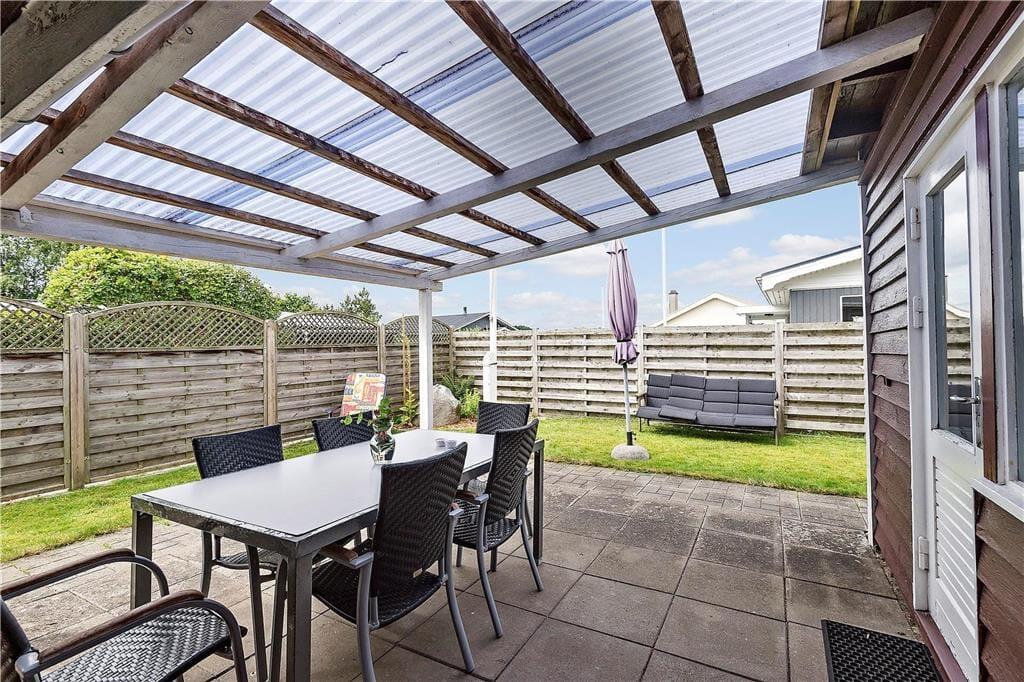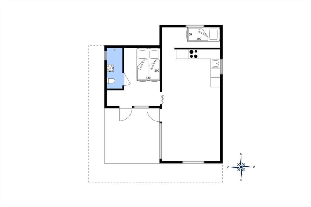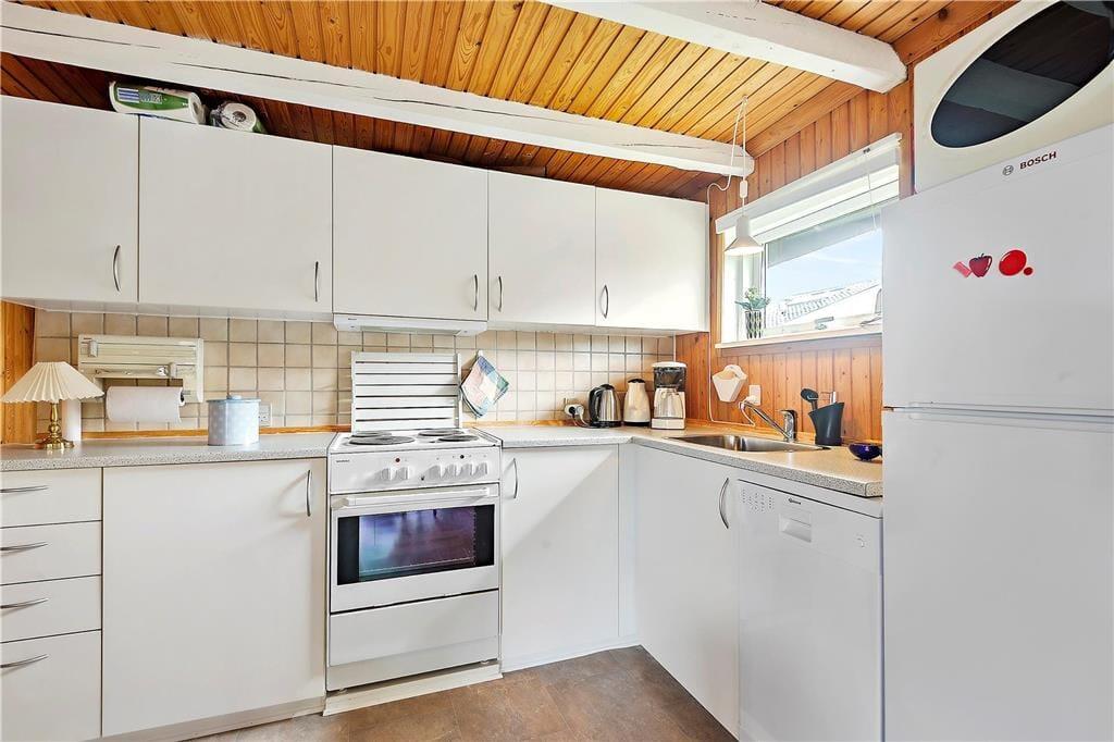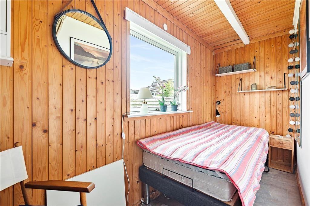 Autentisk sommerhus beliggende i efterspurgt kvarter tæt på en af områdets bedste badestrande. Huset indeholder køkken i åben forbindelse med spise- og opholdsstue, soveværelse med dobbeltseng og egen udgang til ca. 10 kvadratmeter overdækket terrasse, værelse med enkeltseng (bemærk at der alene er forhæng til dette rum), badeværelse med gulvvarme og bruseniche og endelig er der en soveplads på madrads på hemsen ovenover stuen. Det lille hus leder tanken hen på ”de gode gamle dage” og emmer af barndommens feriehygge. Husets vinkel og terrassen giver god læ til at måltiderne kan nydes udendørs.