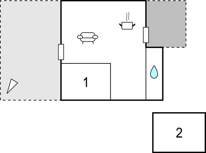 Opholdsstue - 2 Sovepladser. (Sofa, madras eller lignende).