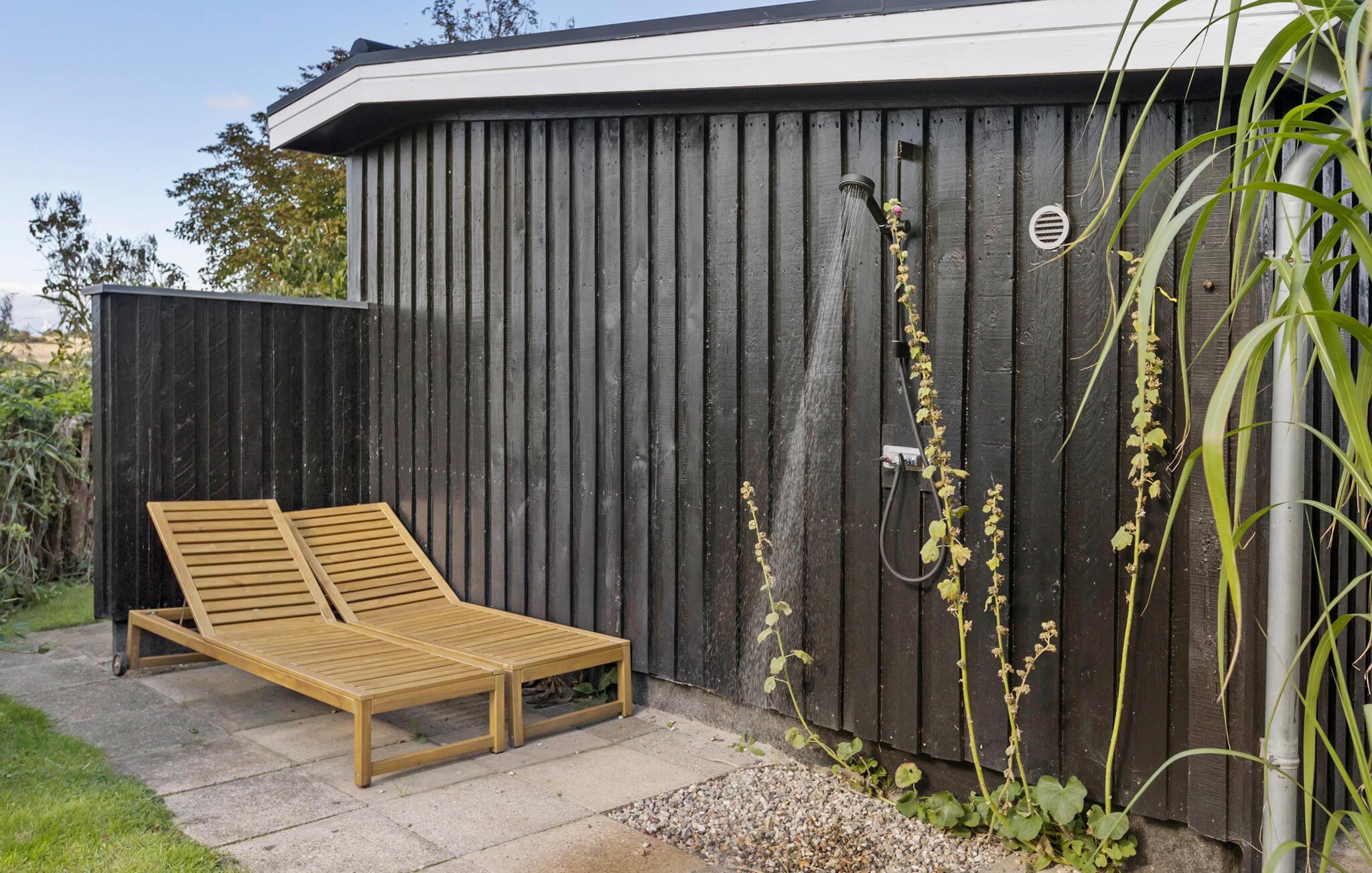 På de varme dage kan I nyde solen fra morgen til aften på terrassen med en vidunderlig udsigt over natur, enge og marker. Skulle vejret holde hele dagen, kan I købe lidt lækkert med hjem til grillen, skylle sandet af i den udendørs bruser og lade en smuk sommerdag gå på hæld med gode bøffer og et glas vin under aftensolen.