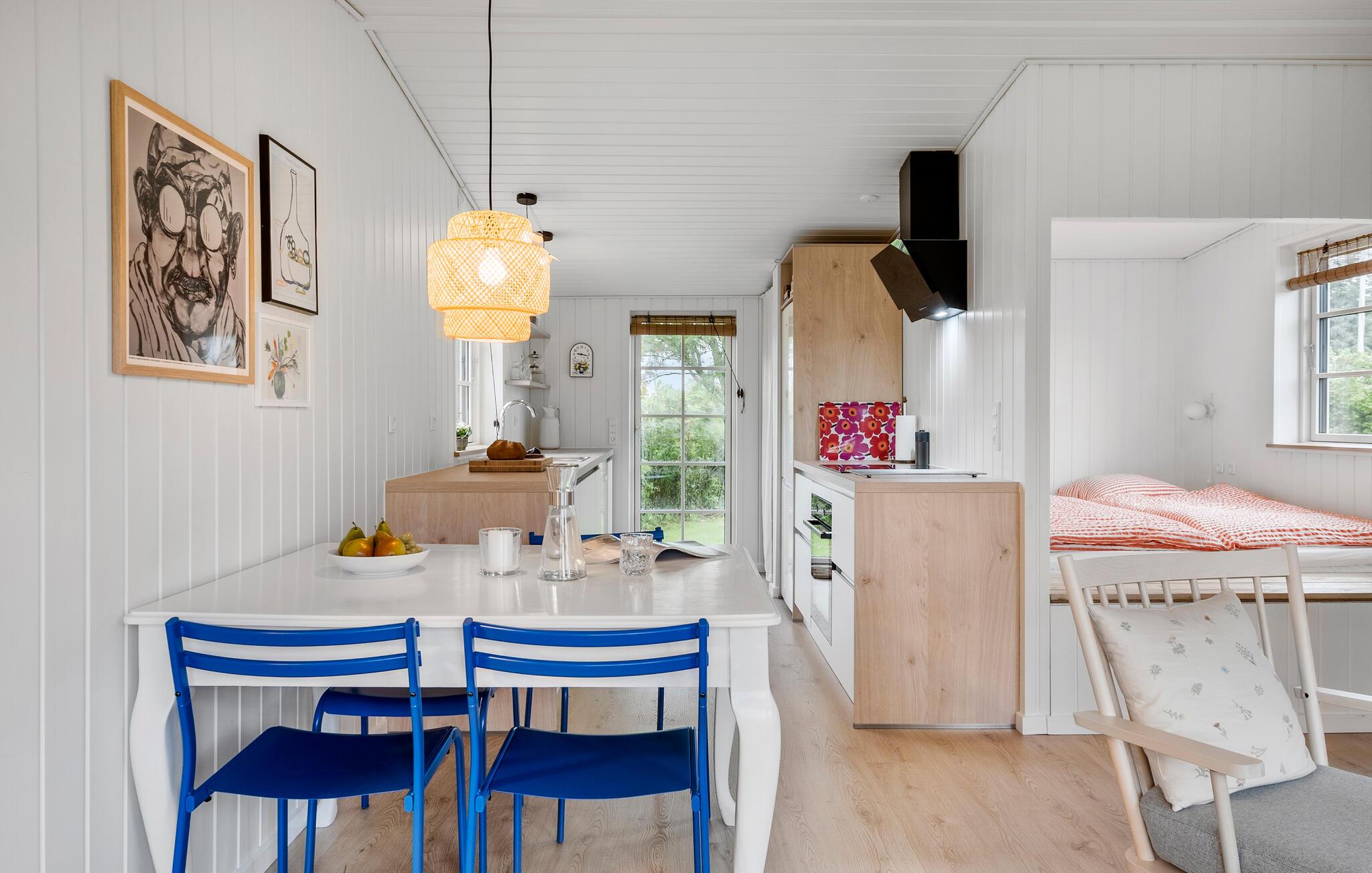 Hyggeligt træhus tæt på børnevenlig sandstrand i naturskønne omgivelser ved Vemmingbund Strand.