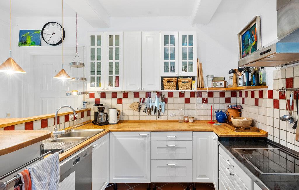 Lad jer betage af den helt særlige indretning i dette omhyggeligt restaurerede hus fra 1800-tallet. Tænd op i brændeovnen og glæd jer til en skøn familieferie, hvor I kan give jer god tid til madlavning, skønne måltider og brætspil. Glæd jer til afslappende læsestunder i de bløde møbler eller måske en god film, som hele familien kan være med på.