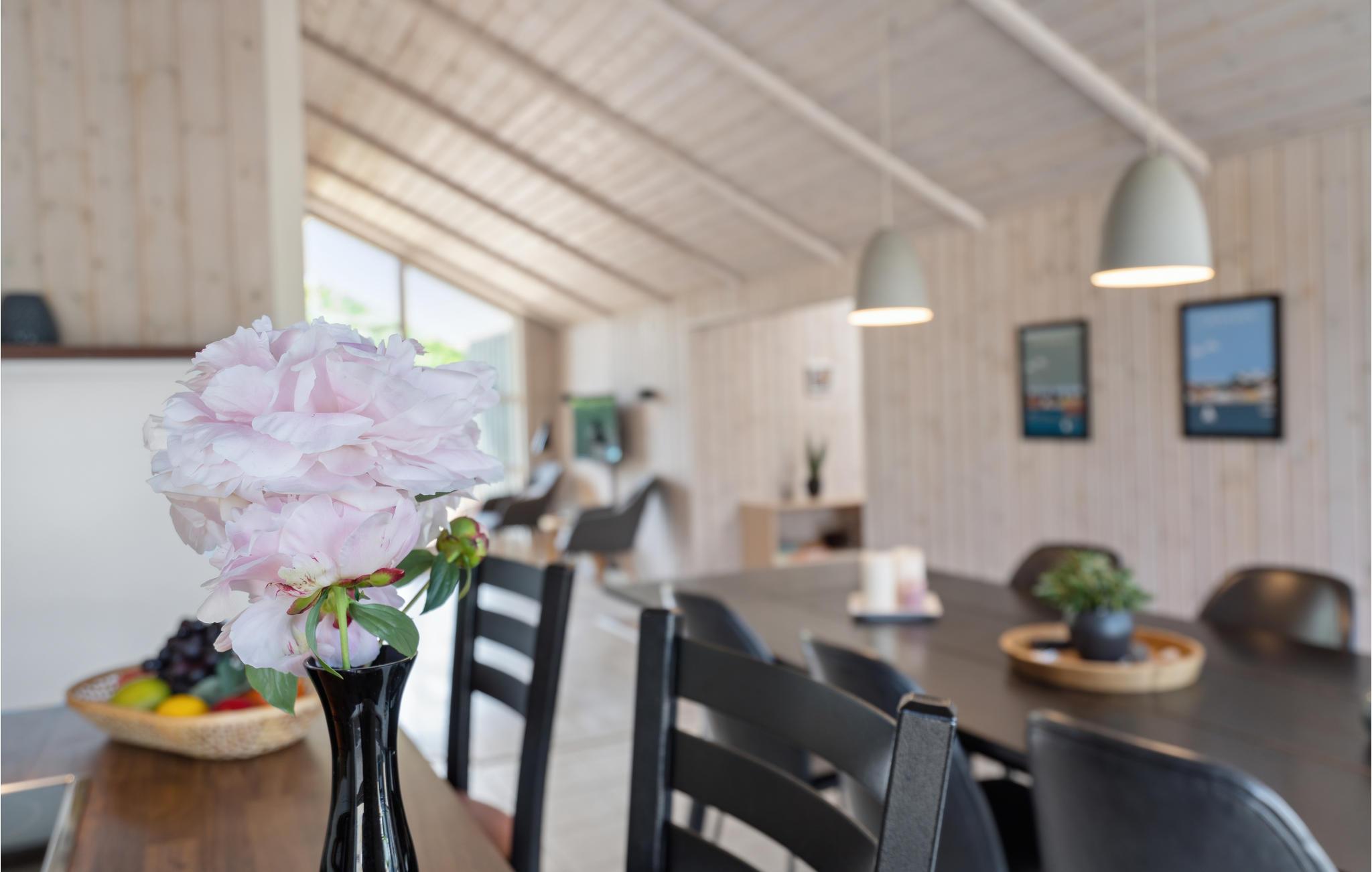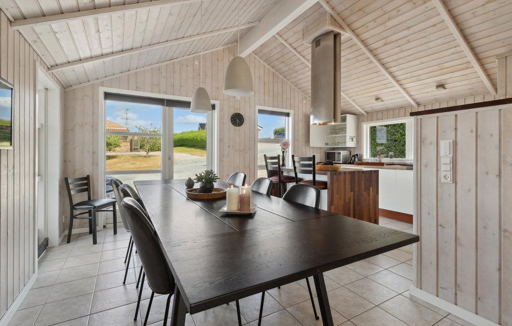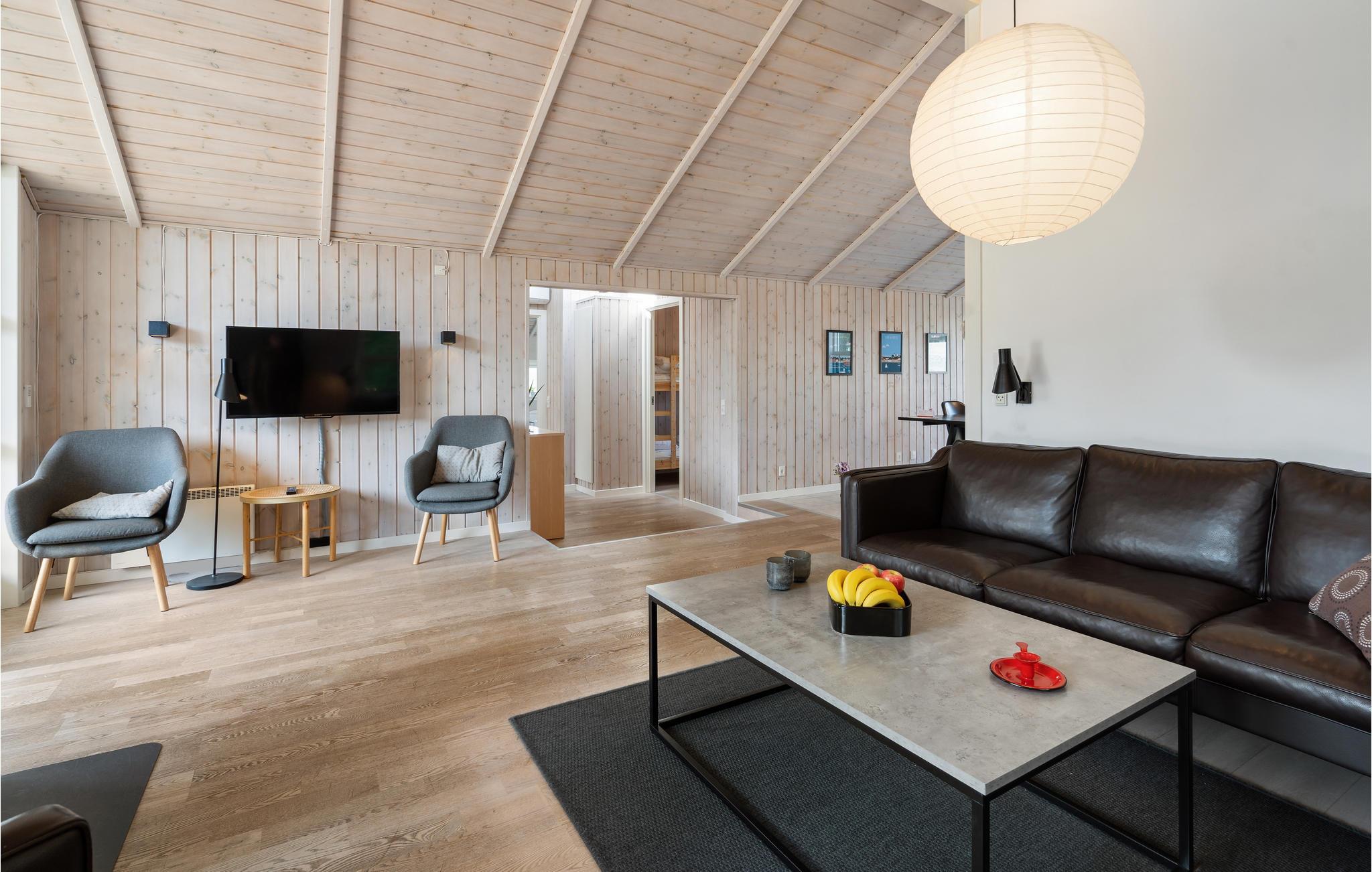 Nyd en afslappende ferie i dette stilfuldt indrettede træhus med sauna og spabad. Huset er udstyret med alle bekvemmeligheder, og de varme farver gør det nemt for jer at føle jer hjemme. Slap af i saunaen eller læs en spændende bog i sofaen nær den hyggelige brændeovn. Her venter filmaftener, brætspilskonkurrencer og meget mere. Haven lokker også med legeredskaber og med plads til at tumle rundt! Slik sol på træterrassen og nyd stemningsfulde grillaftener under stjernehimlen. Den bedste og mest familievenlige sandstrand i området ligger kun et par hundrede meter fra feriehuset. Forfrisk jer i vandet, spil strandtennis og byg sandslotte med jeres små.