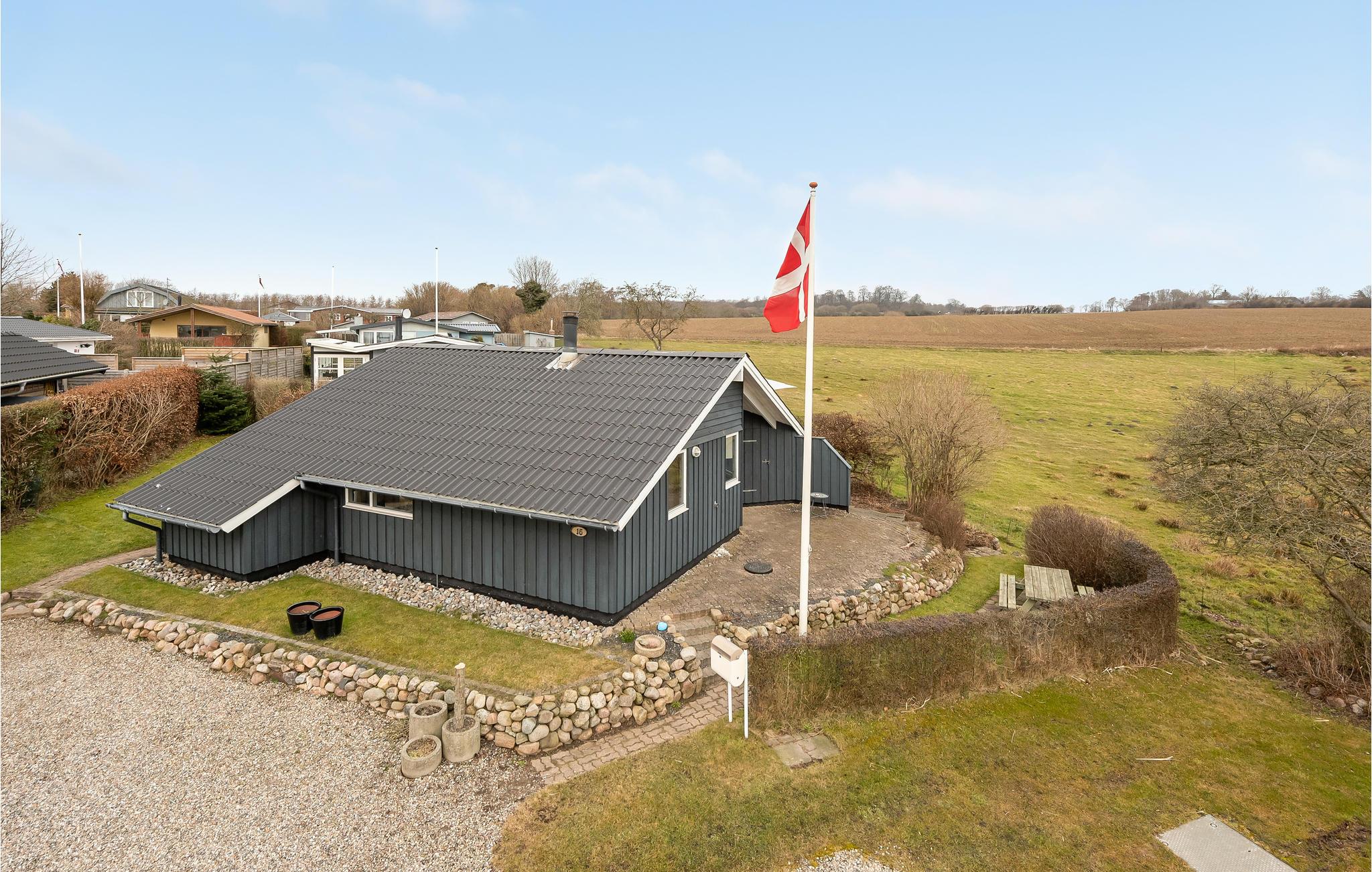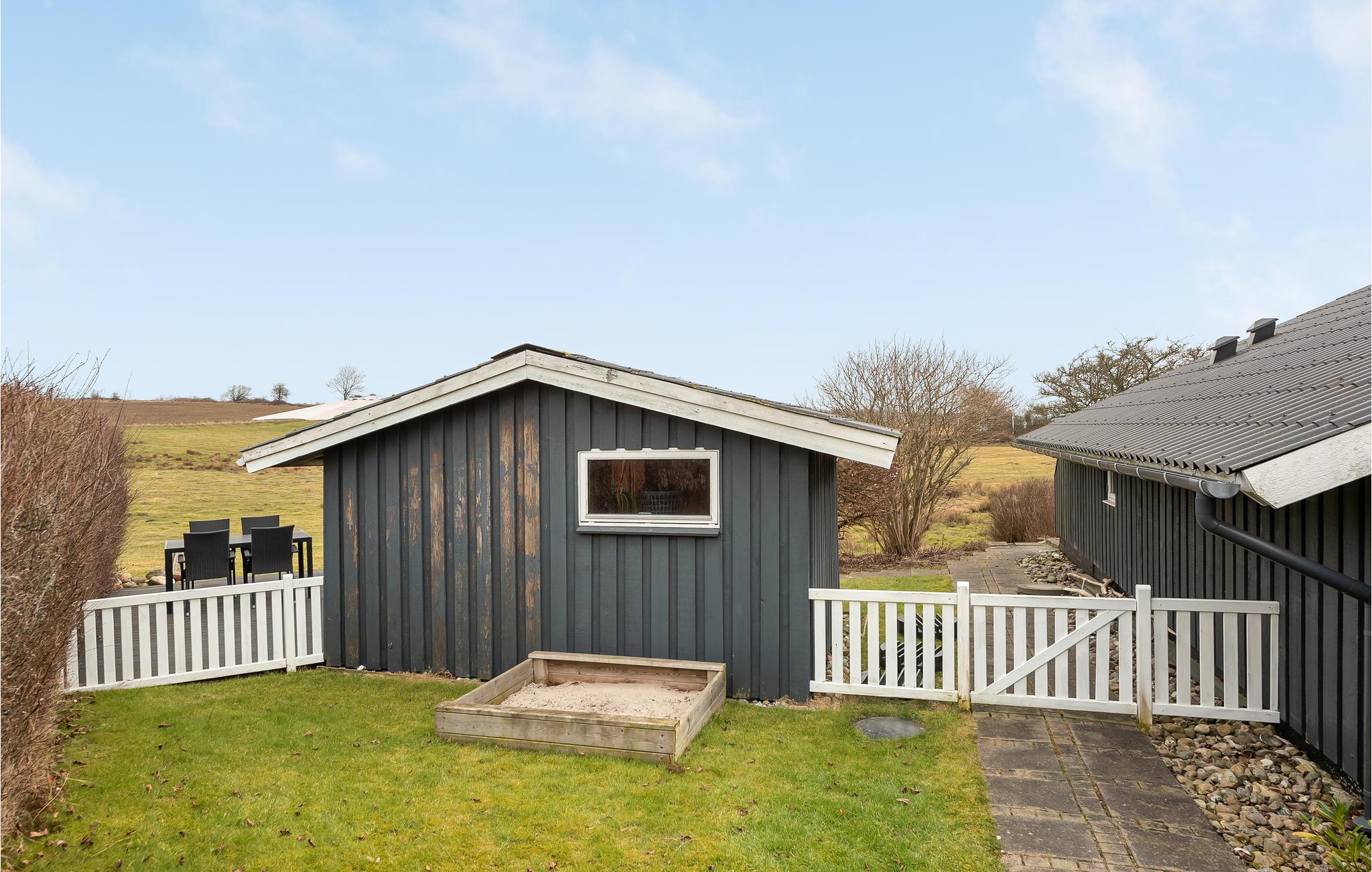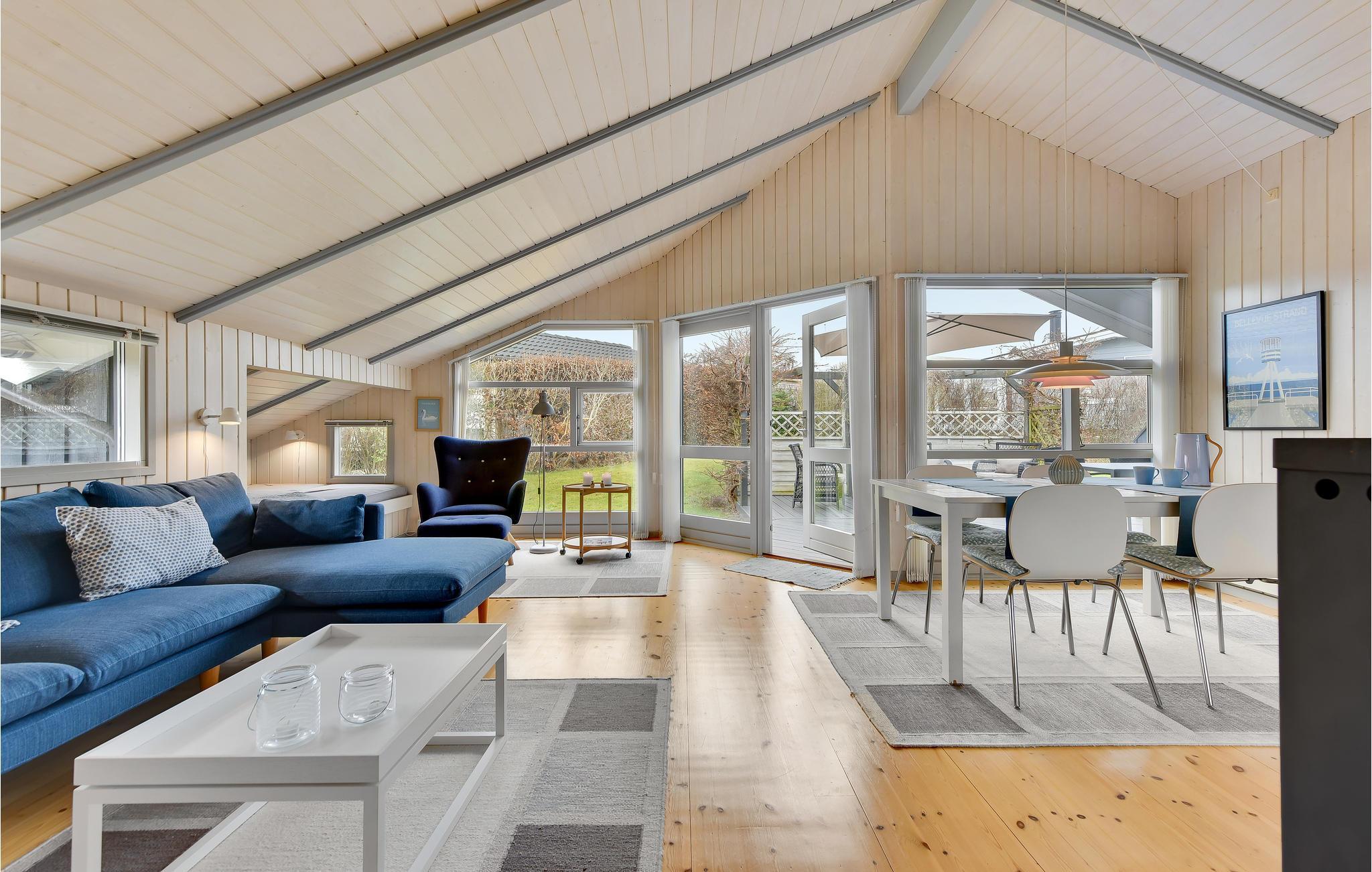 Hyggeligt feriehus ved Vemmingbund Strand med brændeovn, trådløst internet og flere terrasser i rolige omgivelser.