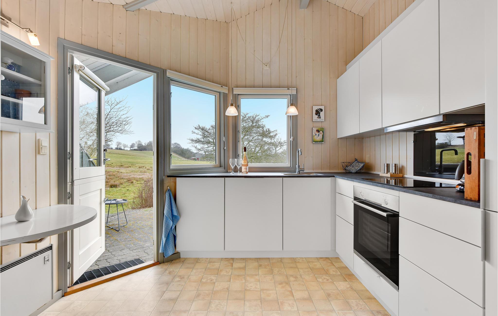 Husets veludstyrede køkken ligger i åben forbindelse med spiseafdelingen og opholdsstuen. I stuen er der brændeovn, som I kan benytte på de kølige dage og aftener. Over alt i huset kan I benytte den trådløse internetforbindelse.