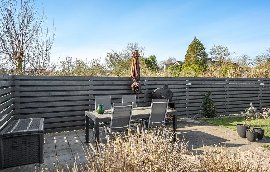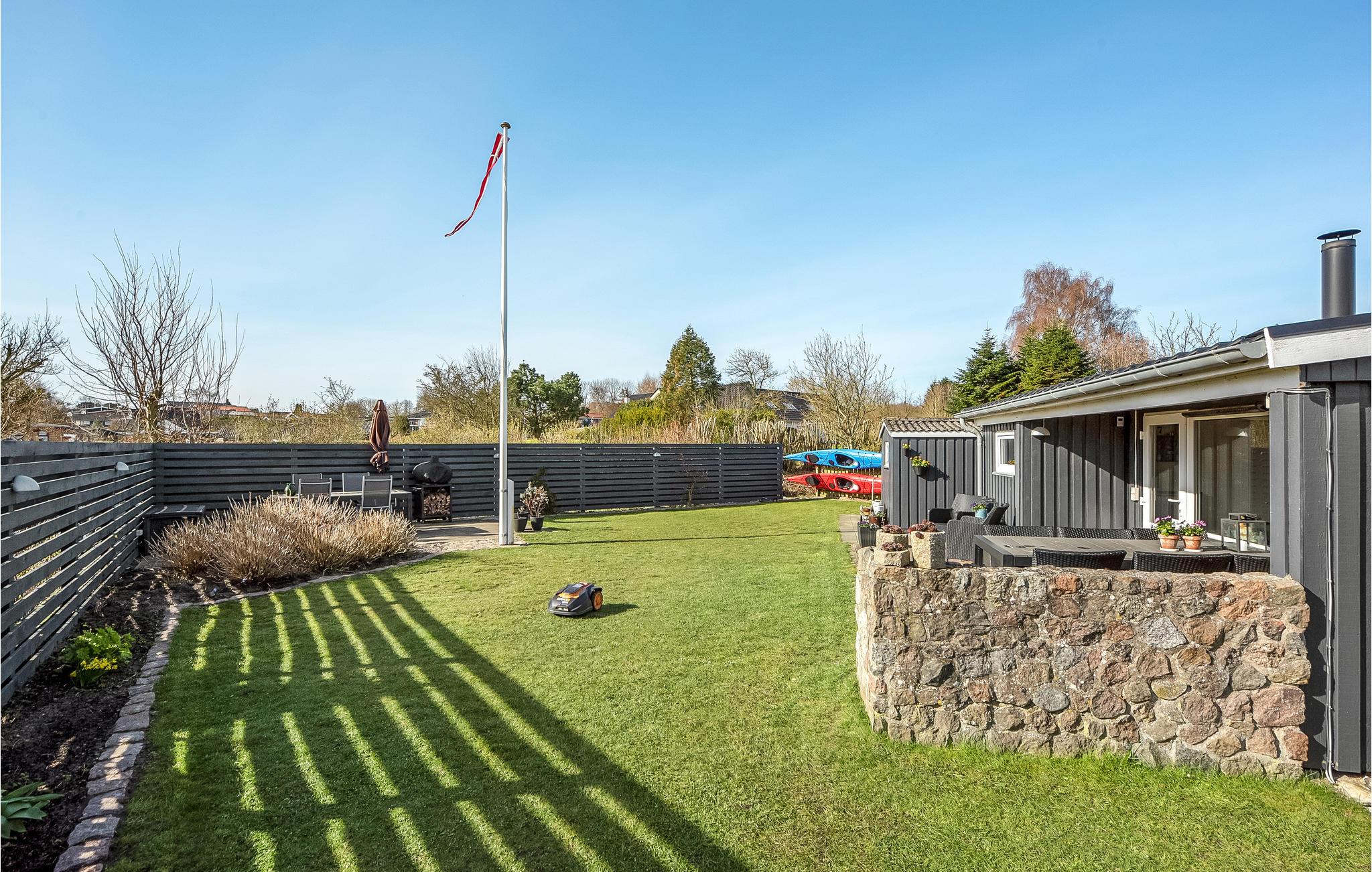 Udenfor står en pæn og velholdt have klar til hyggelige timer udendørs, hvad end det skal være med boldspil på plænen, en drink på terrassen eller bål i haven.