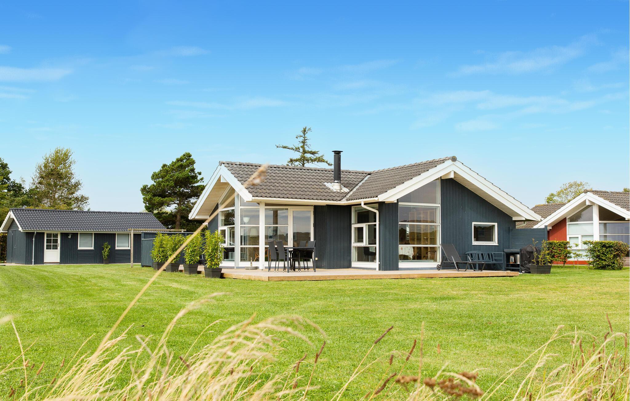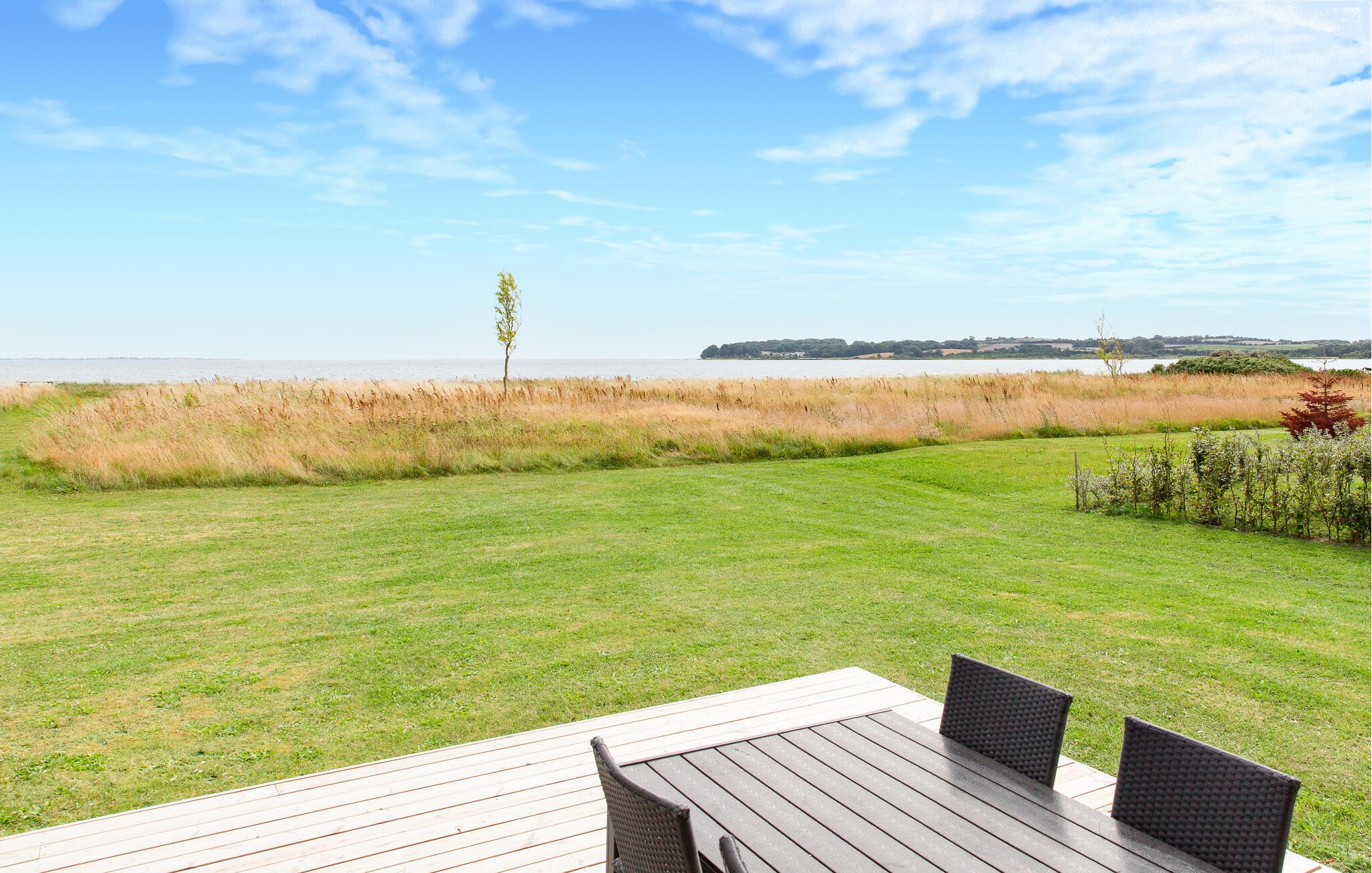 Hyggeligt fritidshus ved Vemmingbund Strand med havudsigt, sauna og spabad, perfekt til aktive ferier og afslapning.