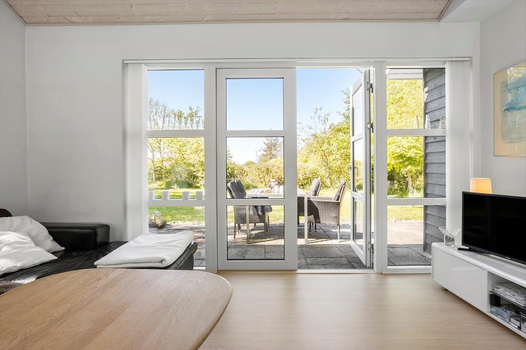 Når vejret indbyder til udendørs leg og afslapning, er den 2510 m2 store grund den helt rette opholdsplads. Træer og buske skærmer grunden smukt af – men beplantningen er dog holdt lav mod vest, så fjordudsigten er bevaret. Græsplænen kan danne underlag for diverse havespil såvel som en middagslur på et blødt tæppe, og hvis I hellere vil tilbringe dagen i en havestol, er der flere terrasseområder omkring huset. På østsiden er terrassen skærmet af, så den minder om en læfyldt gårdhave, og mod vest kan I nyde dagens sene solstråler og synet af Limfjorden.