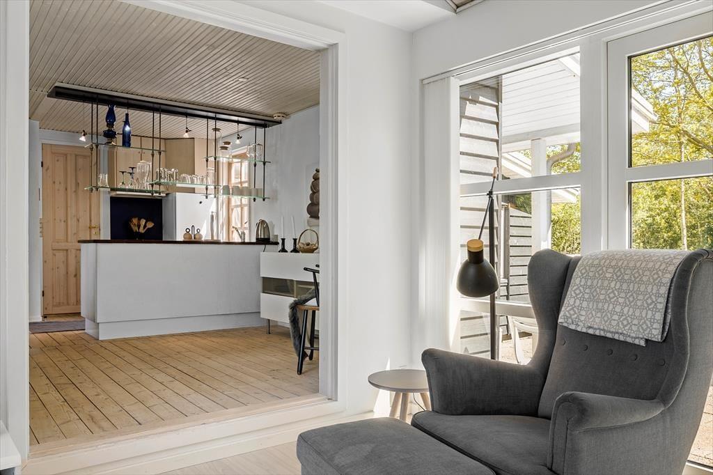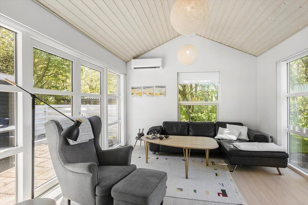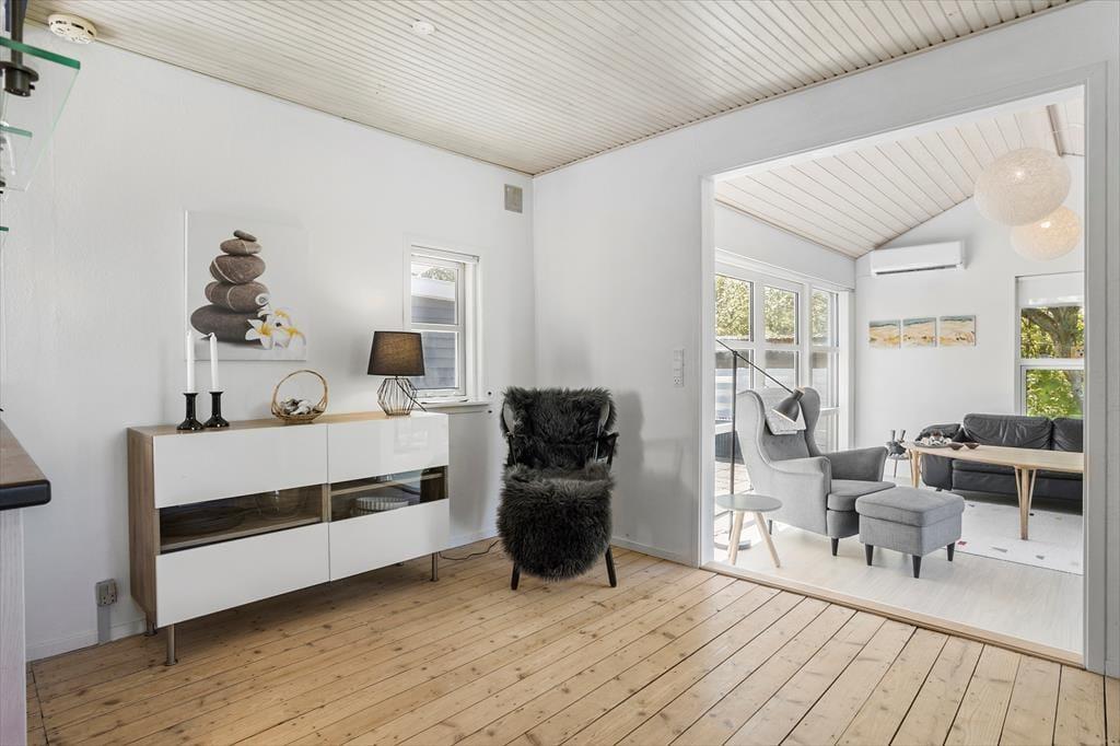 Sommerhuset er blevet opdateret løbende – blandt andet i 2016, hvor planløsningen blev udvidet, så i alt får I 69 m2 at gøre godt med inden døre. Her blev der lavet en skøn stue, som har loft til kip og er udstyret med store vinduer, der inviterer dagslyset indenfor og giver udsigt til de naturskønne omgivelser. Fra stuen er der åben forbindelse til et hyggeligt køkken-alrum med brændeovn, og derudover består planløsningen af et badeværelse med bruser og tre gode soveværelser, der samlet set har sengepladser til seks personer.