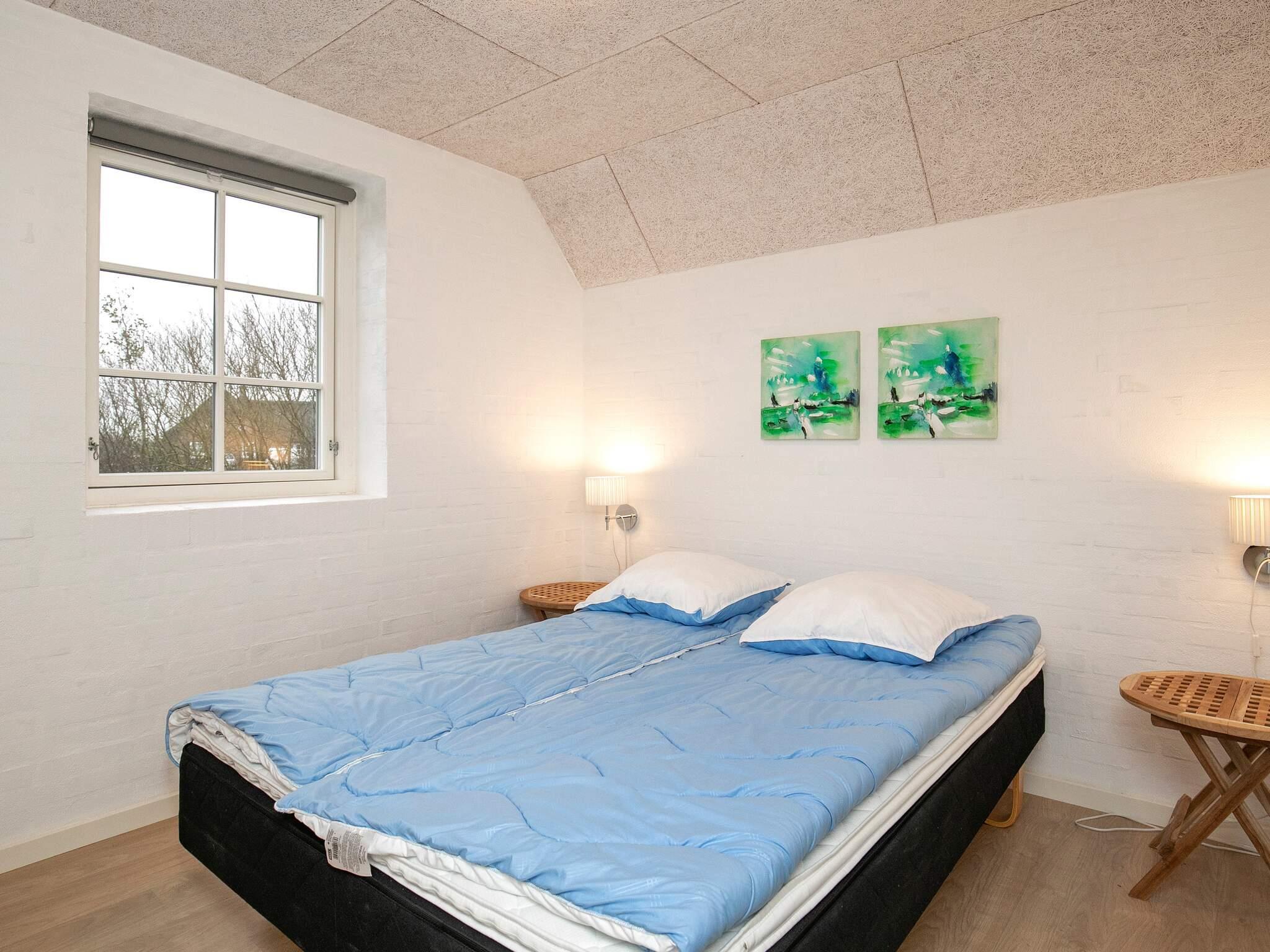 Huset er indrettet med to separate soveafdelinger, begge med to sove værelser med dobbeltsenge og et soveværelse med fire køjepladser samt et badeværelse med bruseniche. I alle værelser er der trægulve og skabe. Midt i huset er der stor stue i åben forbindelse med køkken. I stuen er der centralt placeret brændeovn, spiseplads og sofagruppe.