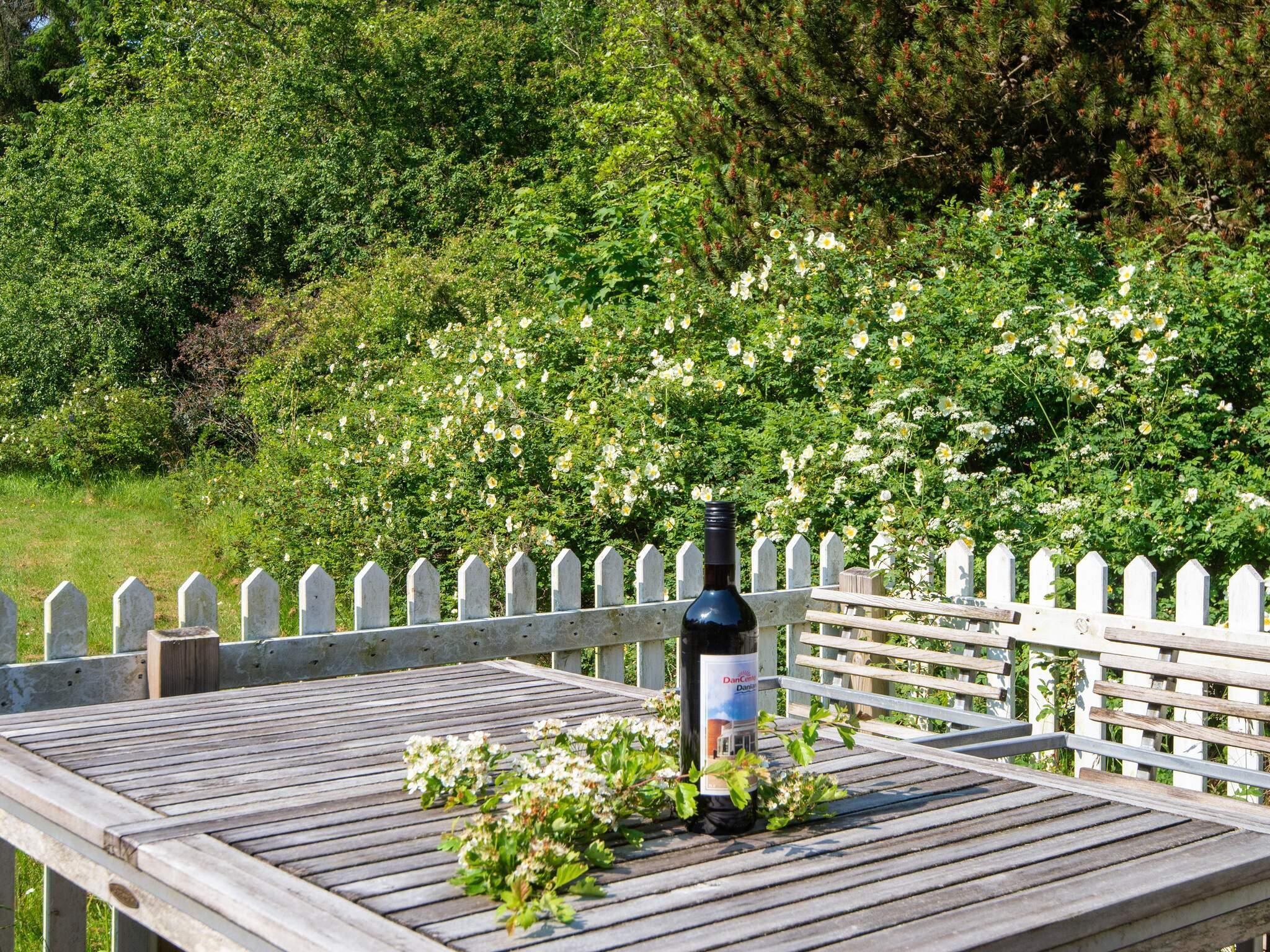 Charmerende og stråtækt sommerhus udført i munkesten beliggende på en ca. 5000 m² stor naturgrund tæt ved Vesterhavsområde. Husets indretning er med nyere og ældre møbler. Gulvene er af granit, sten og træ. Køkkenet er godt udstyret med diverse hårde hvidevarer. I badeværelset er der installeret gulvvarme. Stuen er der brændeovn, der varmer huset op på kølige dage samt TV med Chromecast og dvd-afspiller. Der kan modtages mindst fire danske tv-kanaler og ligeledes mindst fire tyske. Der er gratis trådløst internet. I alt er der tre soveværelser, hvoraf to af dem har en dobbeltseng og det sidste har en enkeltseng. Til huset hører en stor terrasse, hvorpå I kan benytte den tilhørende Weber-grill. Udlejes ikke til ungdomsgruppper.