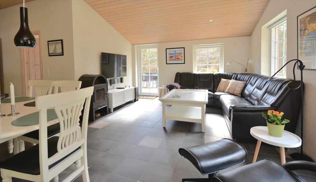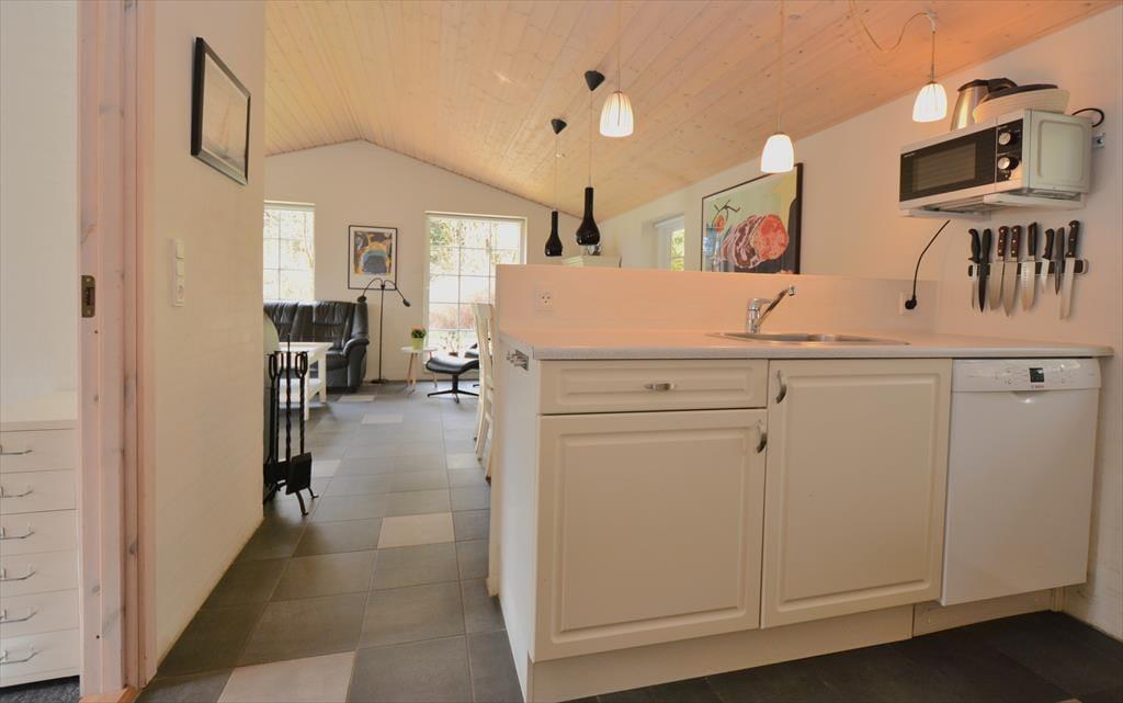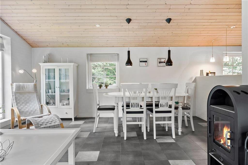 Det lyse og indbydende køkkenalrum er sommerhusets naturlige samlingspunkt – et sted, hvor hele familien kan være sammen, også jeres hund. Her leves livet i et roligt tempo, hvor man kan spille kort ved spisebordet, nyde brændeovnens varme eller tale sammen over madlavningen, mens duften af aftensmad spreder sig i rummene. Den åbne indretning giver god plads og gør det nemt at være fælles, uanset om man leger, læser eller bare slapper af. Hundens kurv eller tæppe finder nemt sin plads i hjørnet, hvor den kan følge med i det hele – og måske tage sig en lur midt i stemningen. I husets værelser kan man trække sig tilbage til ro og fordybelse, uden at føle sig langt væk fra resten af familien. Her er der rum til nærvær og hygge, hvor både børn, voksne og hunden kan føle sig i feriestemning. – uanset om det er første eller femte gang, I besøger huset.