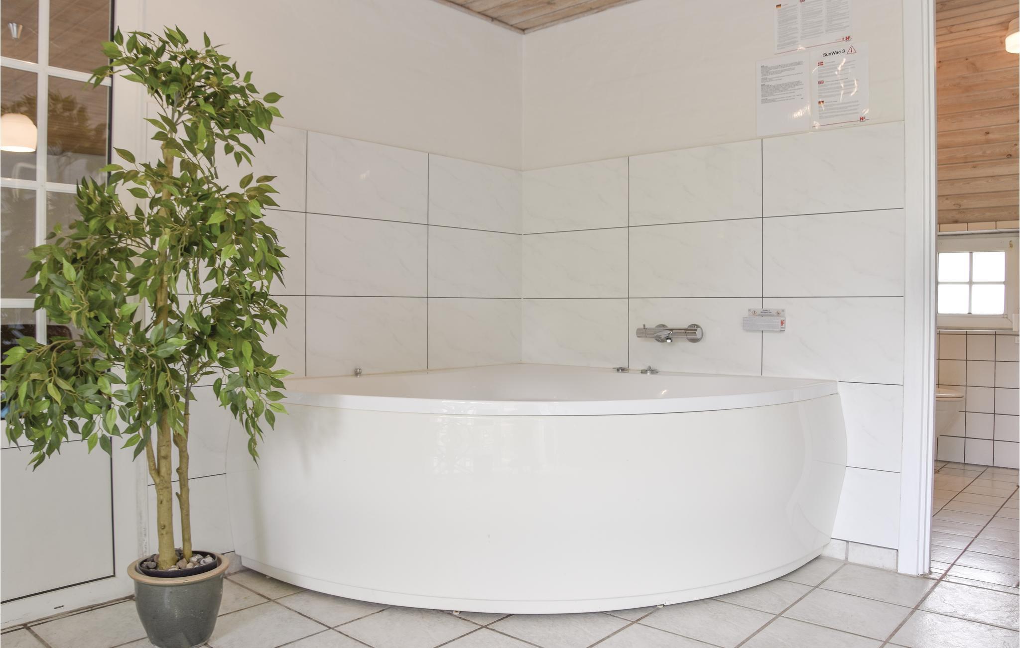 På en stor naturgrund i Vester Husby, ligger dette store feriehus med swimmingpool helt ugenert, perfekt til en afslappet ferie. Huset er godt indrettet til den helt store familie eller til to mindre familier, da soveværelserne er delt op i to afdelinger, der ligger i hver sin ende. I hver afdeling er der badeværelse med brusebad, samt tre gode soveværelser. Køkkenet ligger i åben forbindelse til stuen, så hele familien kan være med i hyggen og snakken, selvom nogen laver mad, og andre ser tv eller spiller spil. I har jeres egen private wellness afdeling med en 19 m² stor swimmingpool, spabad og sauna. På terrassen er der lagt op til mange timers udendørs hygge i solen eller med grillaftener og på den store grund er der god plads til leg og boldspil. Der er gynge, sandkasse og rutsjebane til familiens yngste medlemmer. Omgivelserne er ideelle til lange vandre-, cykel- eller løbeture ad de afmærkede stier, der blandt andet fører ud til havet. Et stort helt uberørt klitområde ligger op til stranden og havet. Feriebyen Søndervig der ligger ca. 15 minutter i bil fra huset, lokker med sine mange butikker, restauranter og bag byen, de flotte hvide sandstrande.