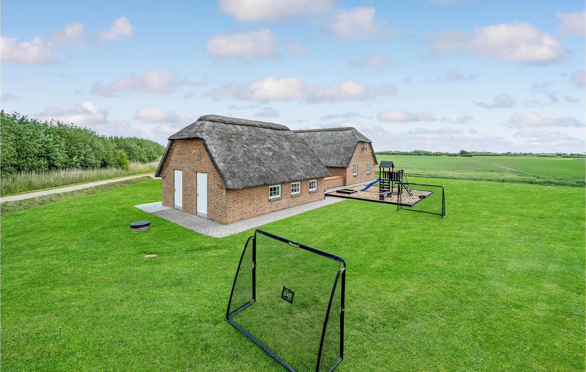 Rummeligt sommerhus i Vester Husby med indendørs pool, spa, sauna og aktivitetsrum for hele familien.