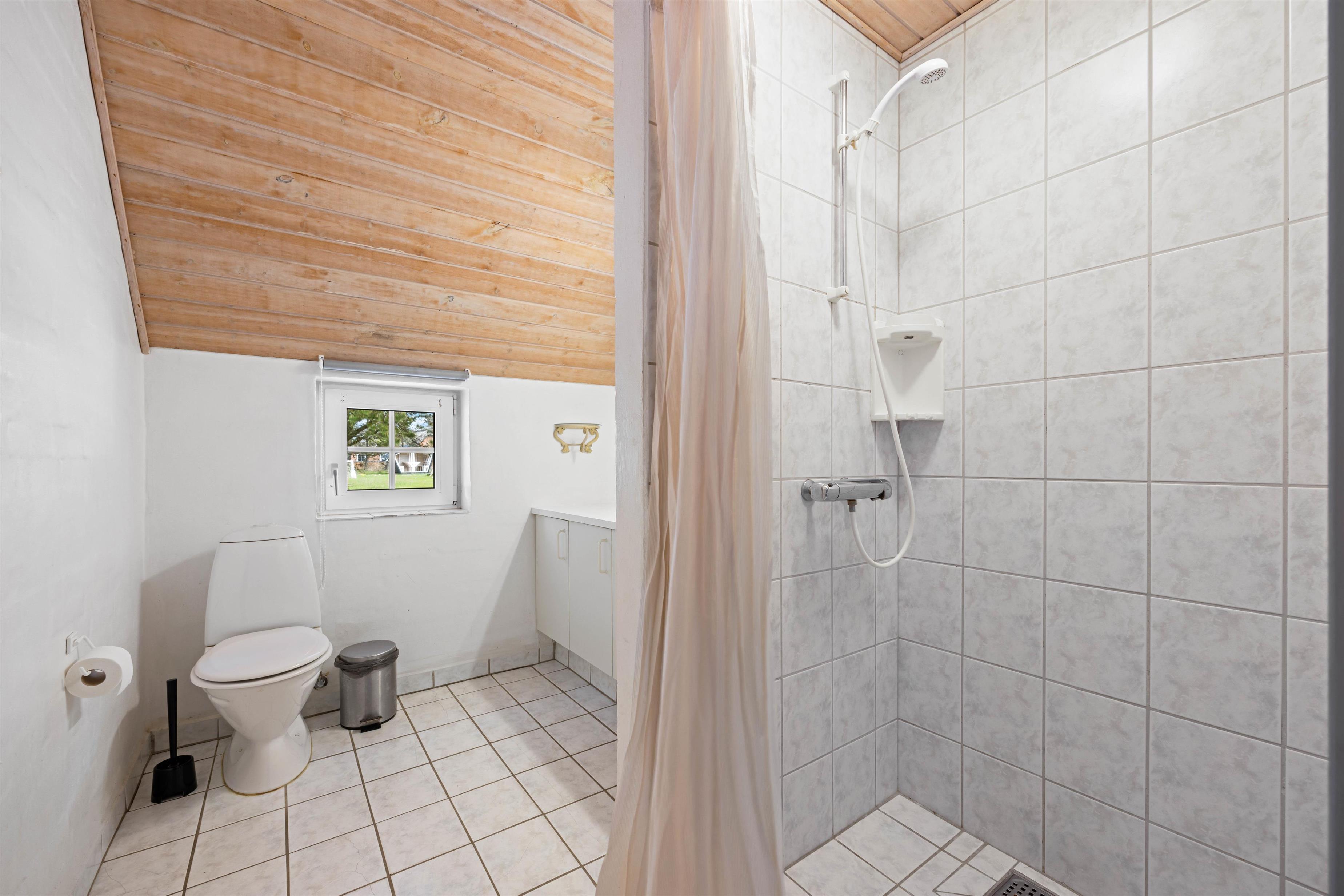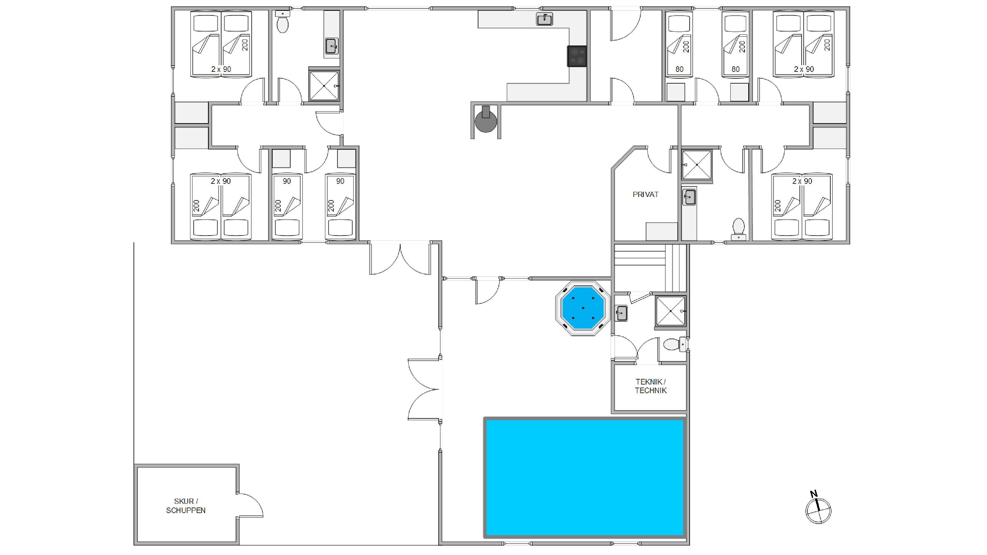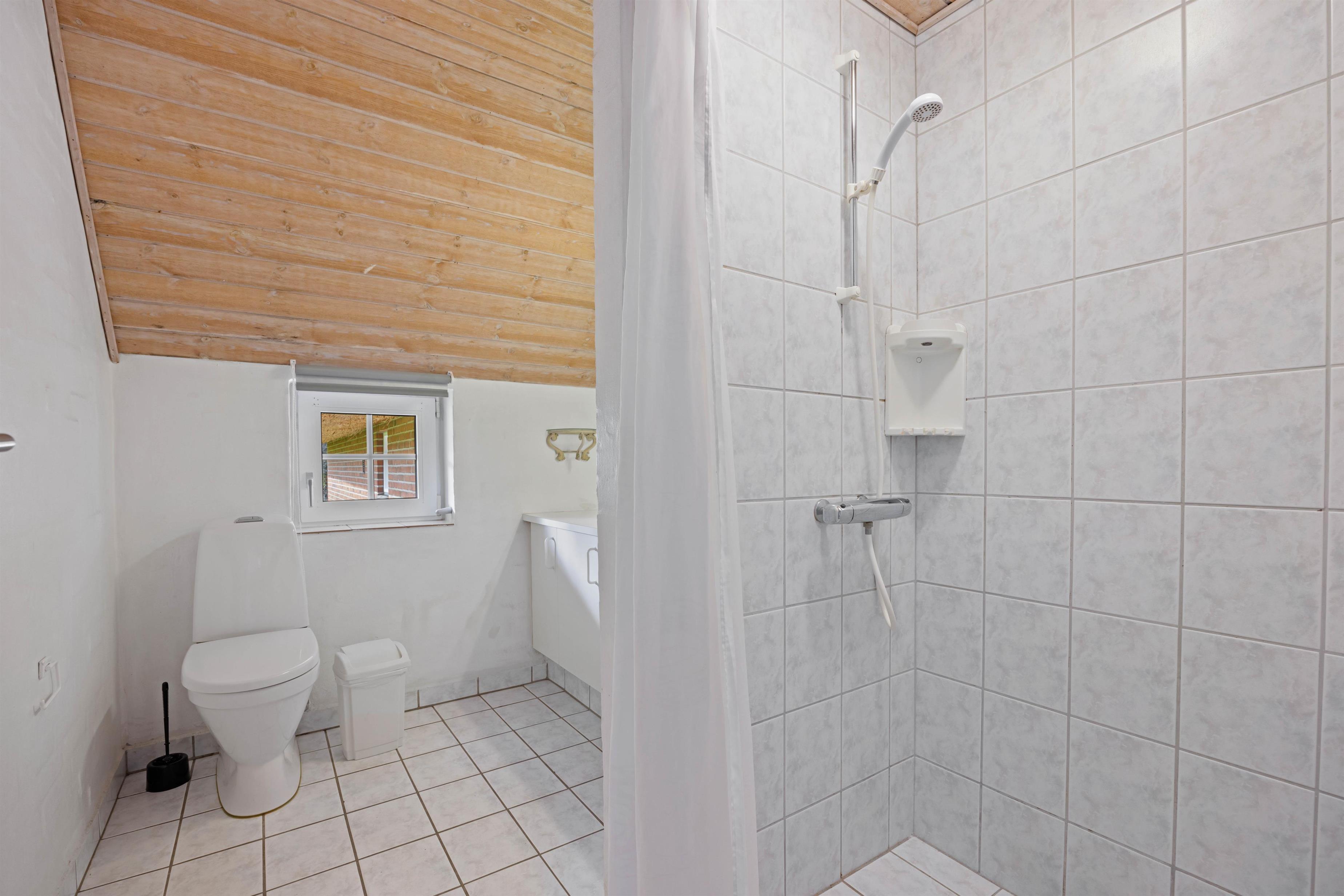 I sommerhuset er der lagt op til sjove vandaktiviteter med både pool, spabad og sauna. Vandet i den 18 m² store pool bliver opvarmet med en energibesparende varmepumpe. Poolen har svømmetræner, der er en rutsjebane til børnene og god plads at boltre sig på. Det er et kæmpe plus dette feriehus har badeværelse i forbindelse med poolen, som sikrer det våde badetøj, bliver i pool rummet. Ligeså skal ingen rende med våde fødder igennem huset, når der er toilet lige ved.