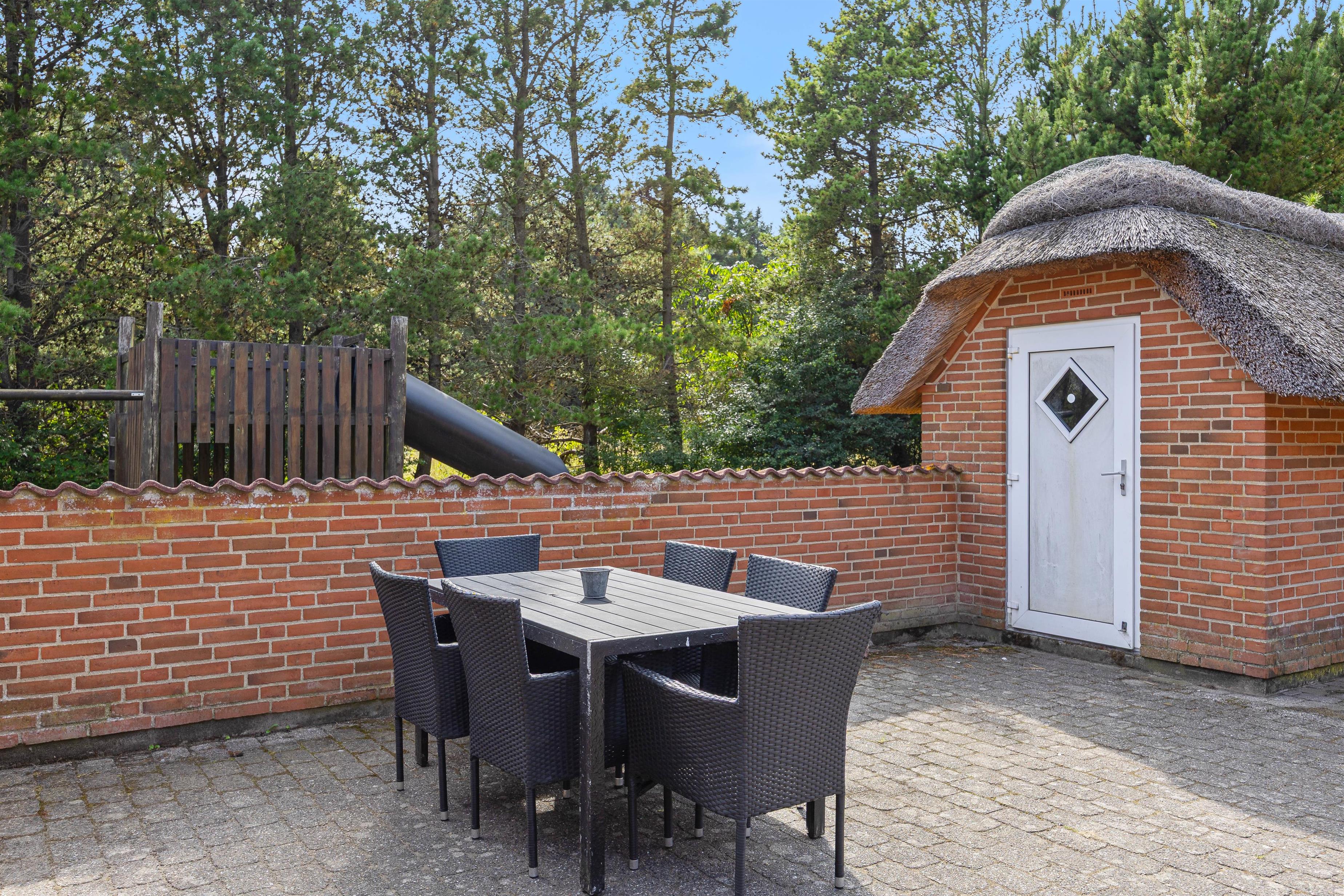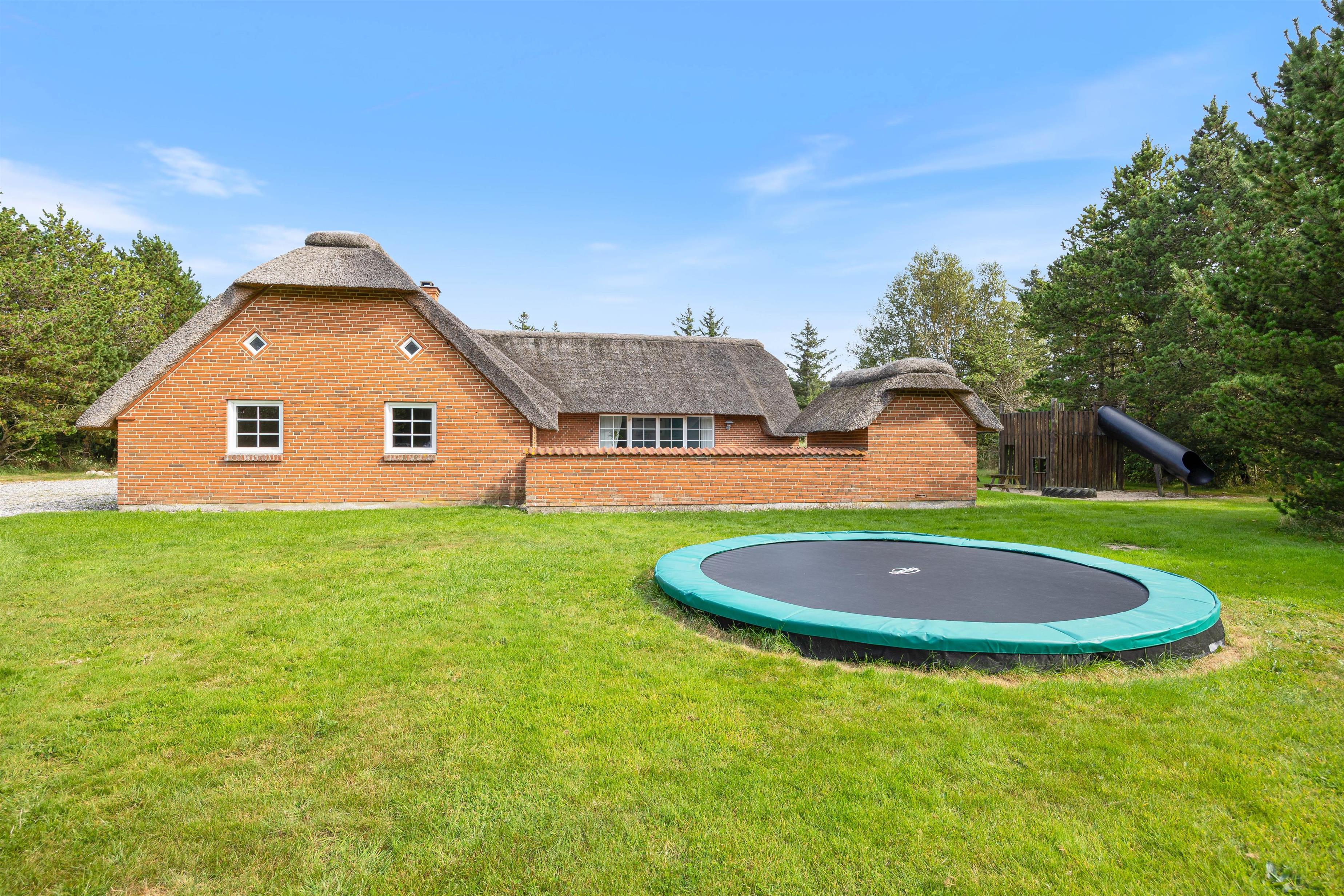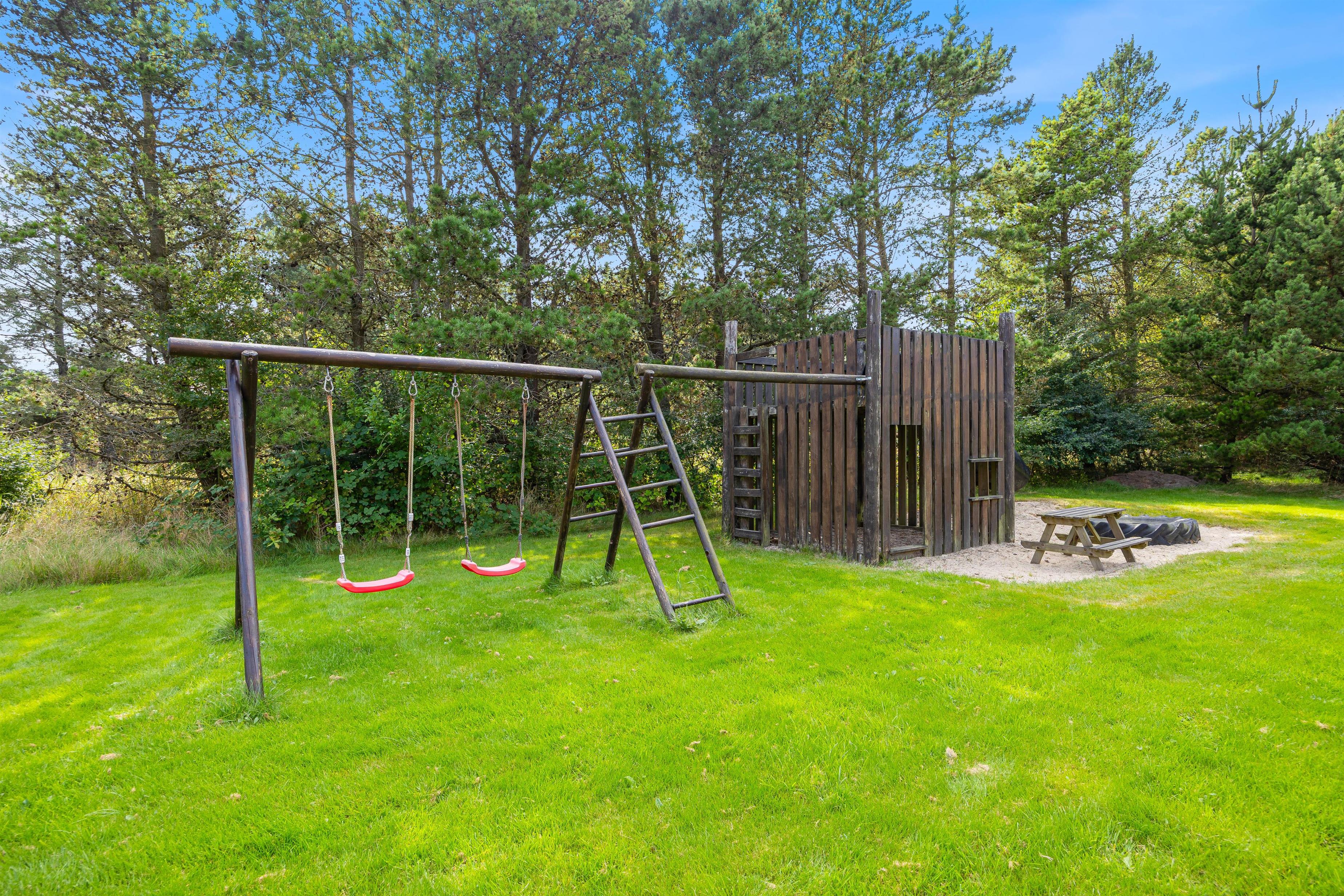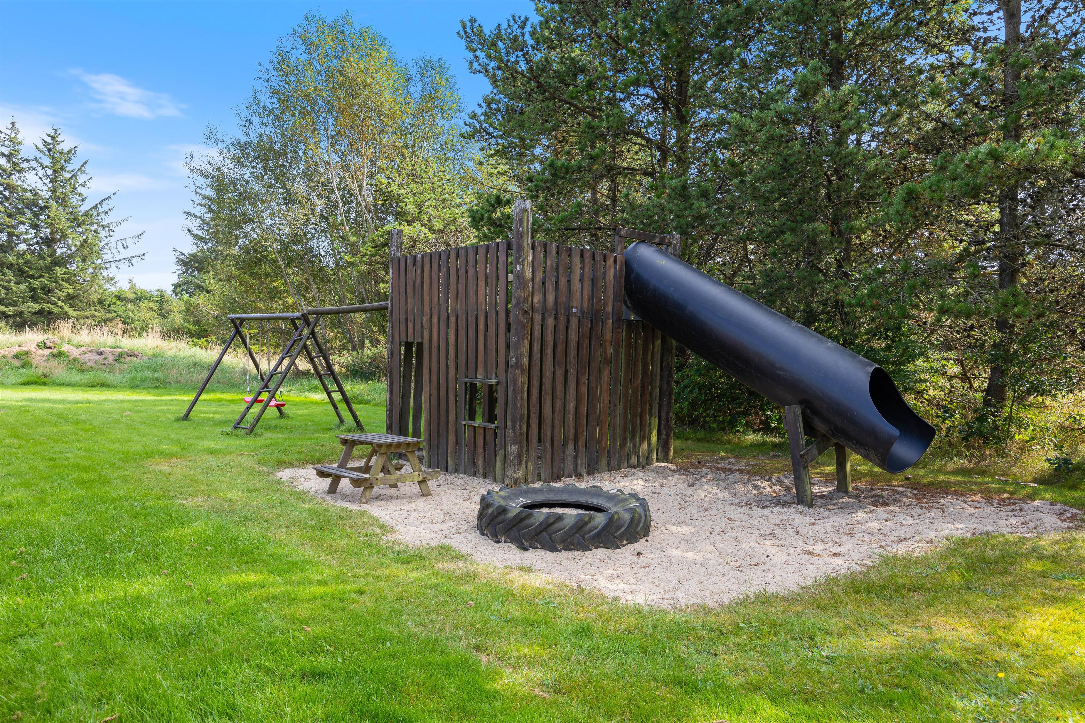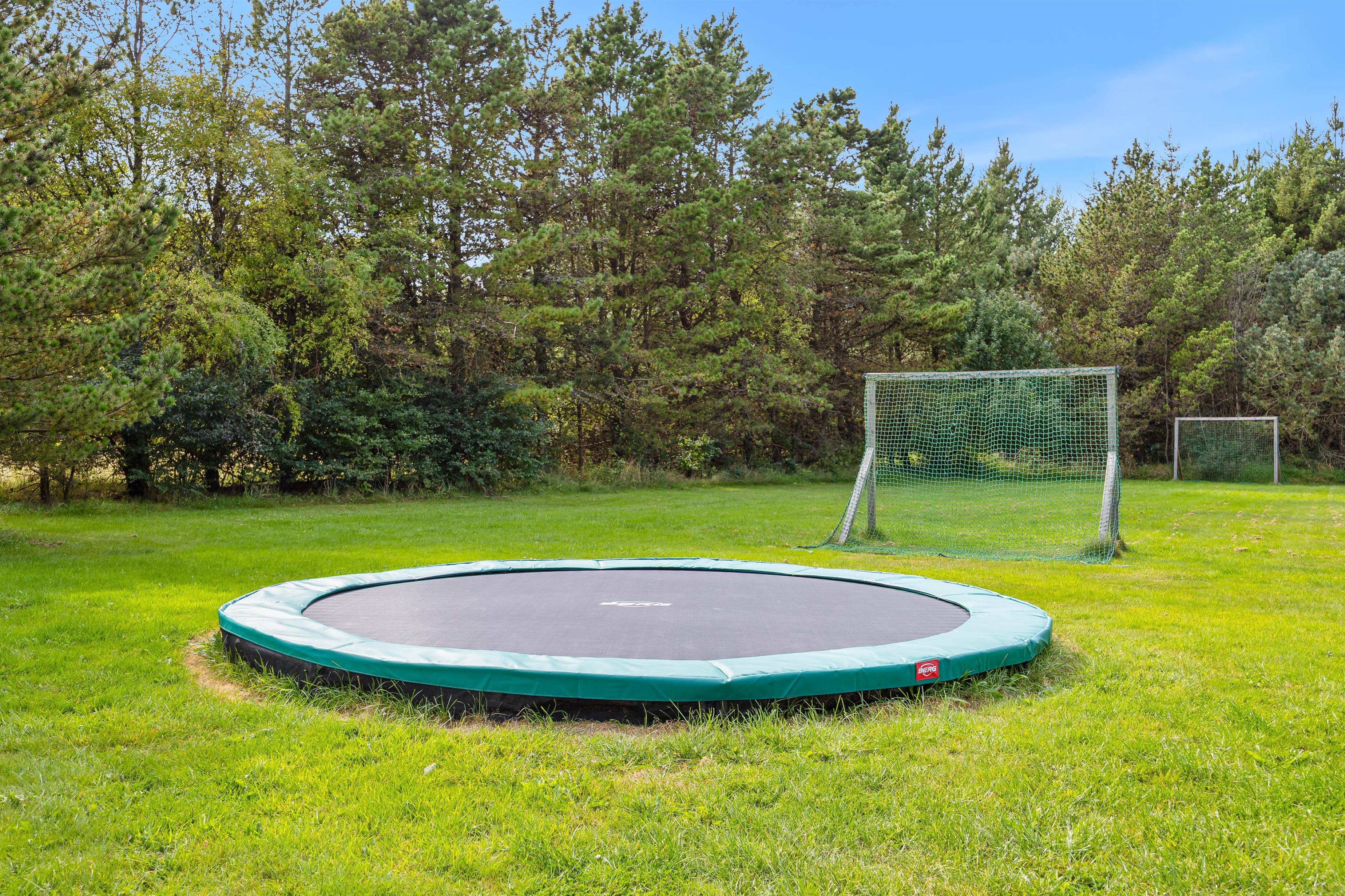 Til huset er der er super lækker terrasse med afskærmning, som giver god mulighed for solbadning og hygge omkring grillen om aftenen. Her kan I også nyde en drinks i solen, imens i dømmer børnenes fodboldkamp, eller ser de små gynge og klatre i legetårnet. Der er også en nedgravet trampolin, så gymnasten kan folde sig ud og øve sine spring. Den store grund giver i hvert fald rig mulighed, for at aktiverer både store og små ved sommerhuset.