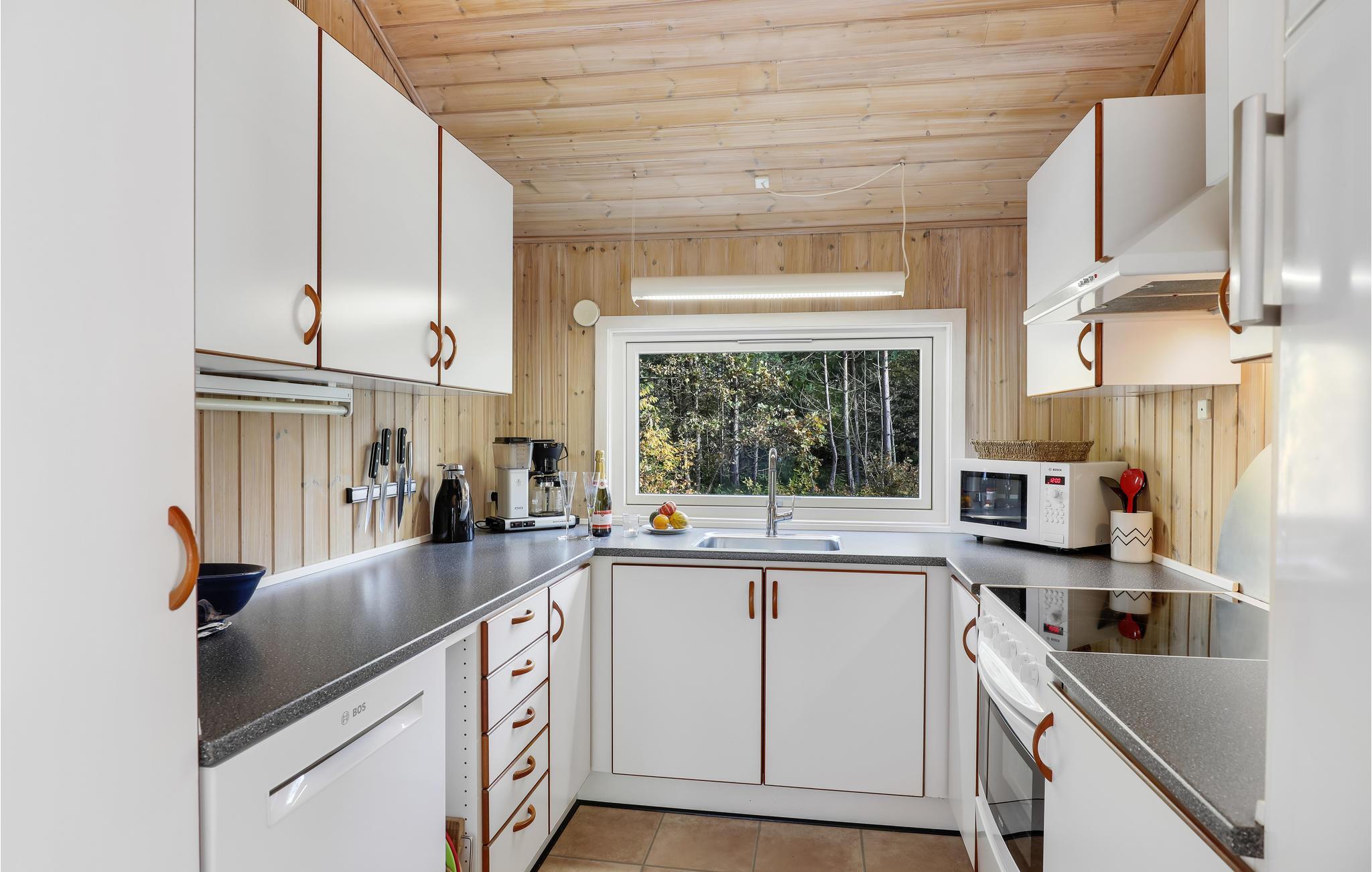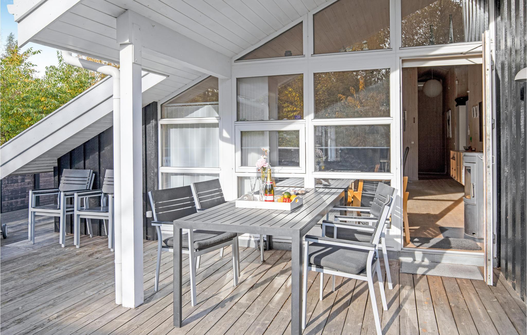 Dette hyggelige sommerhus byder op til otte gæster velkommen. Det har to badeværelser, herunder et spabad til herlig afslapning. I den lyse stue kan I hygge jer foran brændeovnen. Den store, delvist overdækkede terrasse er et oplagt sted at spise morgenmad og senere lade dagen gå på hæld ??med et glas vin. En grill er til rådighed til hyggelige grillaftener.