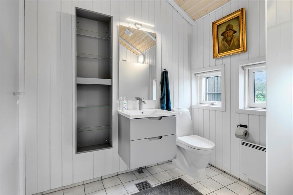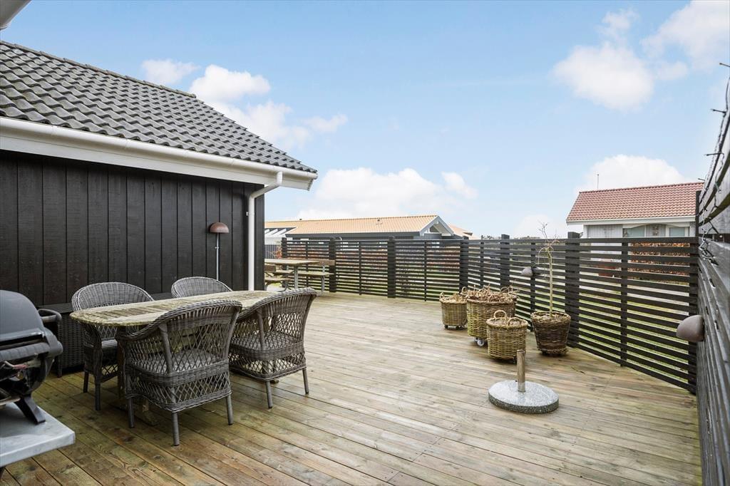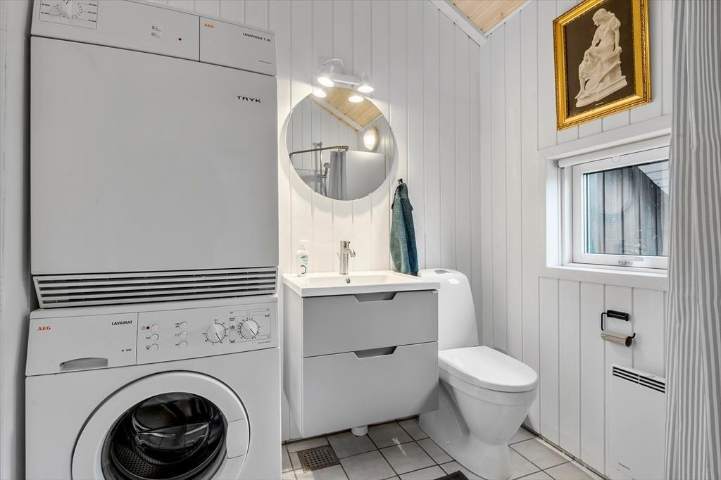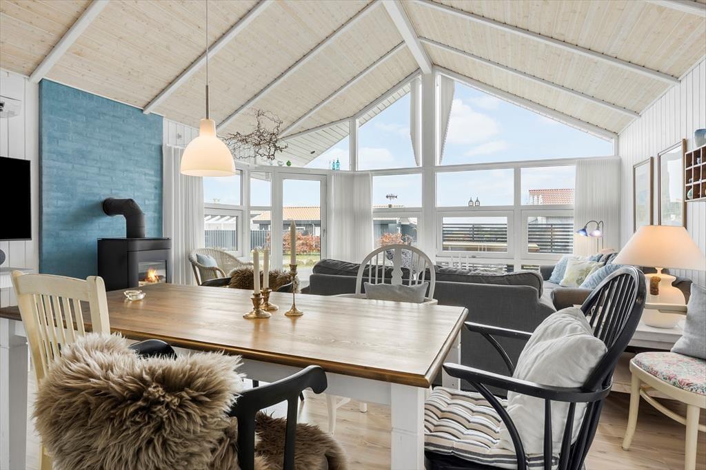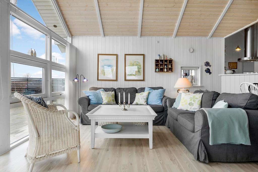 Rummeligt feriehus med havudsigt og tæt på badestrand og indkøb. Indgangsparti/bryggers, stor kombi opholds/-spisestue med brændeovn og udgang til solrig terrasse. Køkken-alrum med køleskab, fryser, microovn, opvaskemaskine, komfur m/ovn. 3 soverum, hver med 1 dobbeltseng. (2 180x200 og 1 140x200) 2 badeværelser, hver med bruseniche, håndvask/skabsarrangement, toilet. Vaskemaskine, tørretumbler samt sauna i det ene badeværelse.
