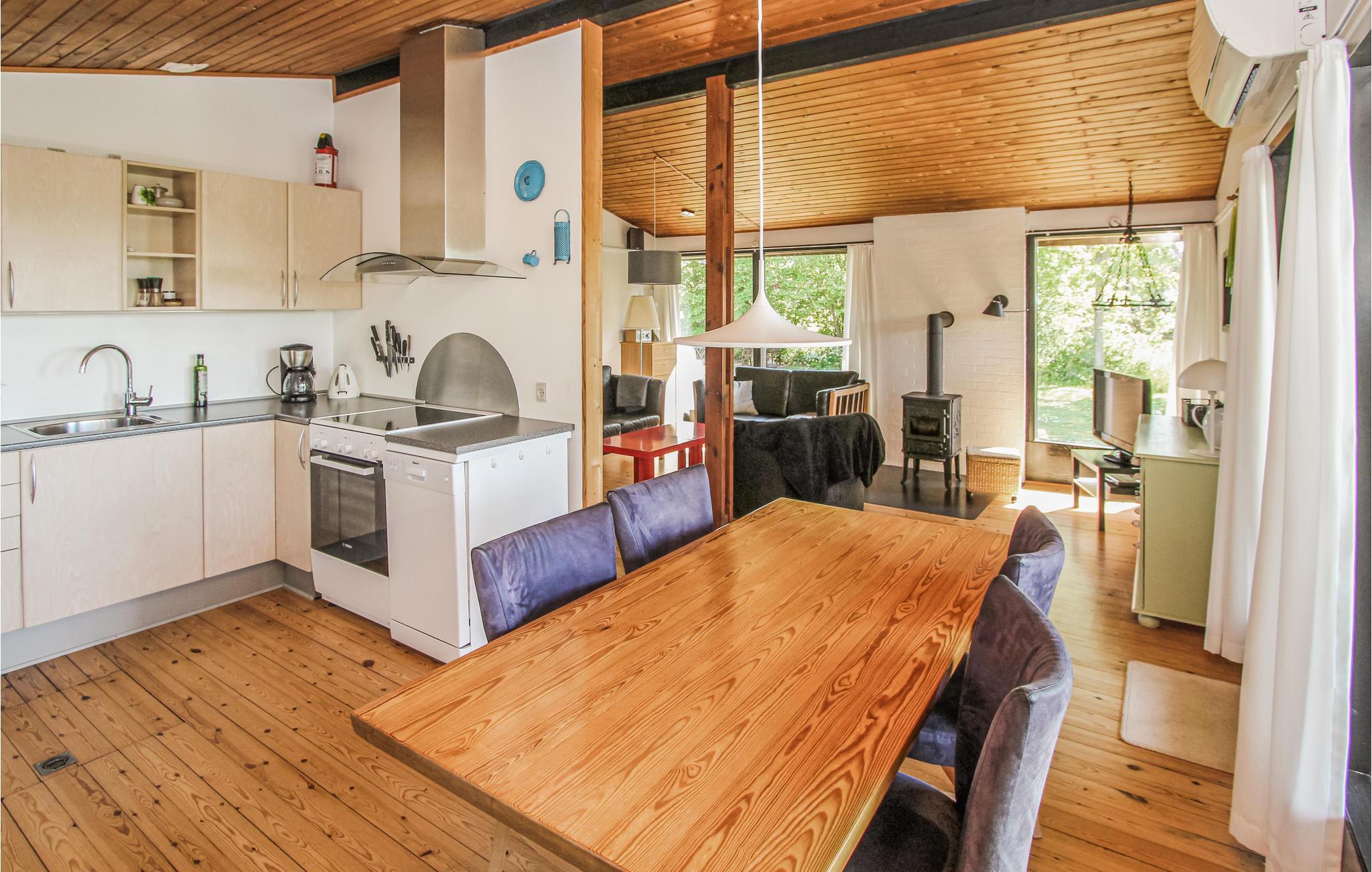 Hyg jer med jeres kære i de hyggeligt indrettede værelser i huset, og jeres firbenede ven kan også komme med på ferie. Tilbered lækre feriemåltider sammen, som I kan spise med udsigt over haven. Om aftenen inviterer sofaerne til at sidde sammen i lang tid, drøfte dagen og lægge planer for den næste. Flammernes knitren i brændeovnen, som udstråler en hyggelig varme, skaber en behagelig atmosfære.