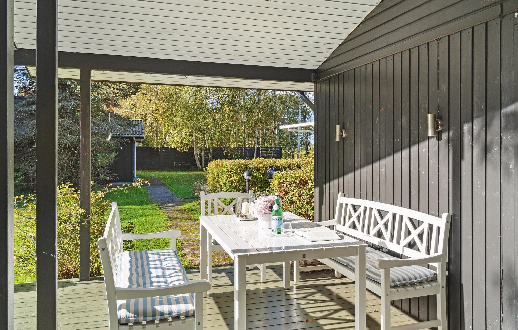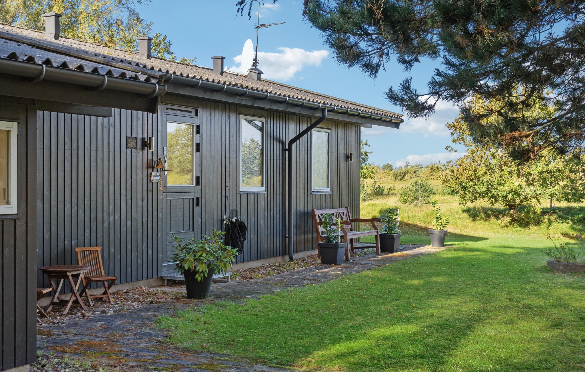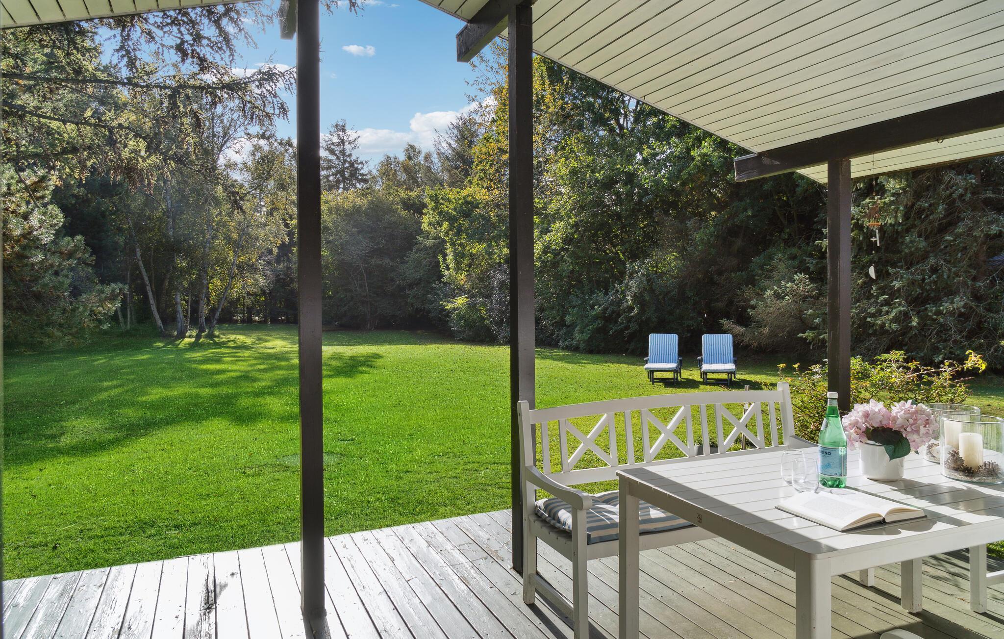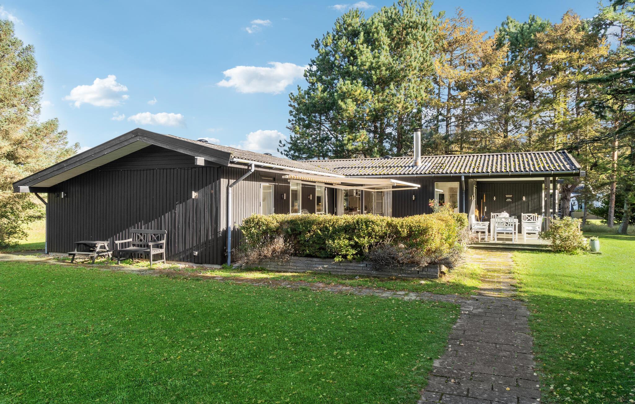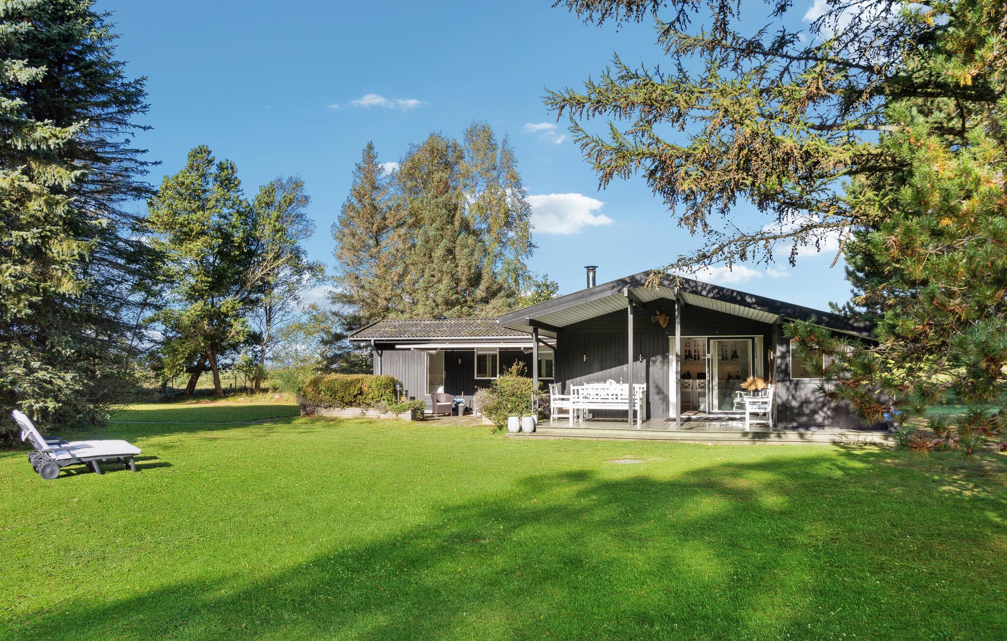 Skønt træhus nær Vesterlyng strand med åben planløsning, have, og natur lige udenfor døren.