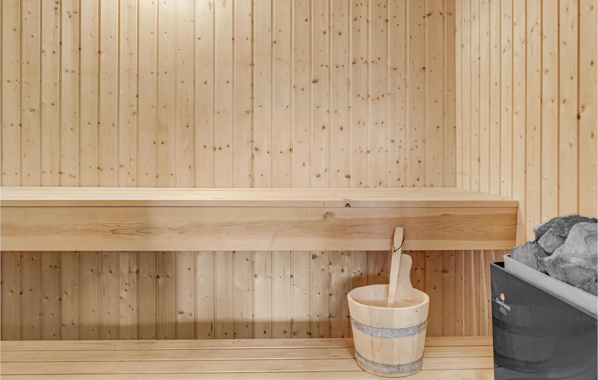 Pænt og lyst feriehus i træ med sauna, spabad og terrasse tæt på stranden i Sømarken.