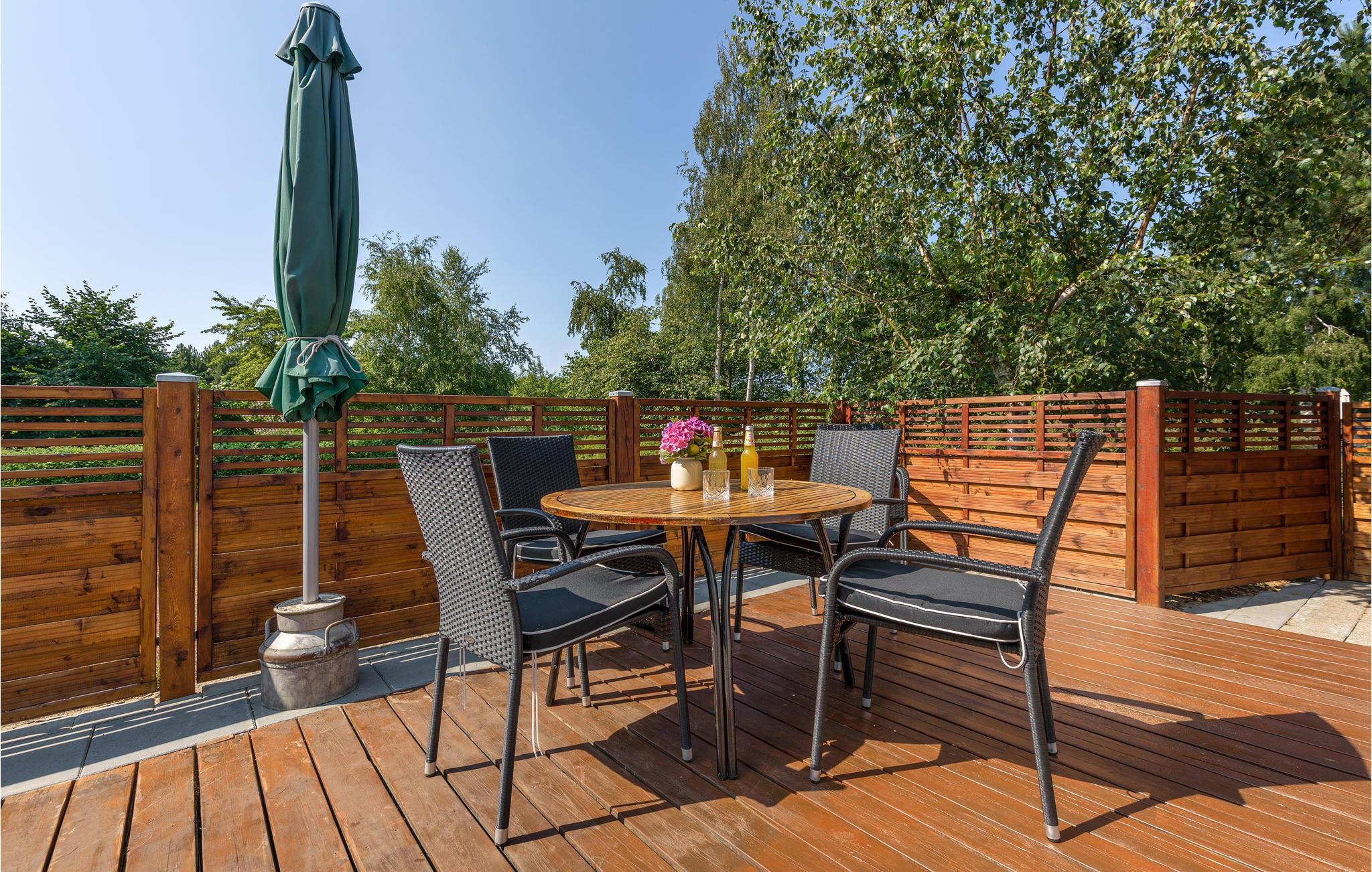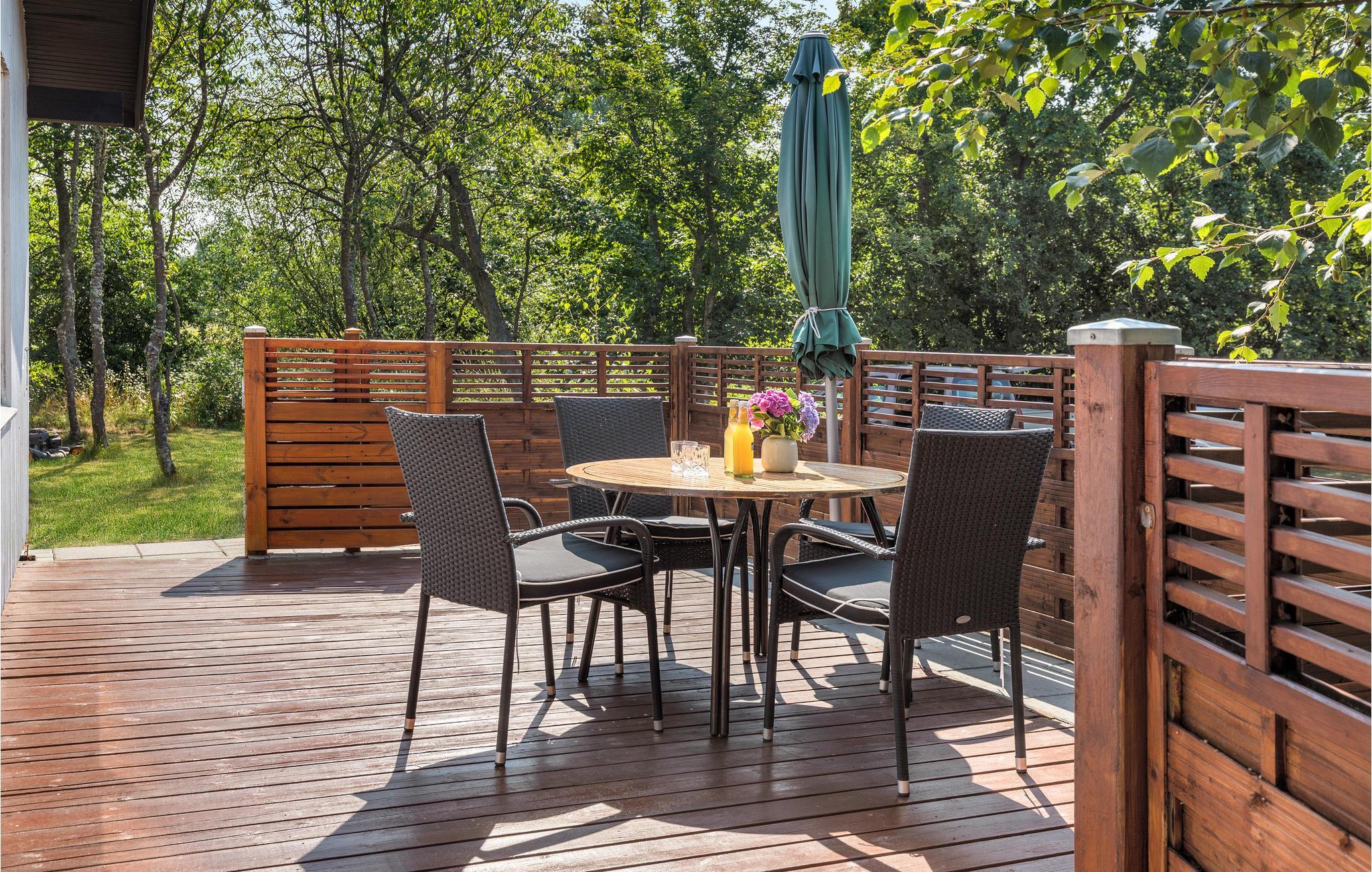 Velholdt og rummeligt kvalitetssommerhus med pæn og lys møblering. Huset ligger i det attraktive Sømarken og nær god sandstrand. Dejlig terrasse og velholdt grund med stor have og store træer. Komfortable møbler og et funktionelt køkken med el-komfur, opvaskemaskine, køle-/fryseskab, og mikrobølgeovn. Huset er helårsisoleret med elvarme, men har også en brændeovn i stuen, hvor I kan samles om aftenen og nyde den behagelige varme fra den knitrende ild.