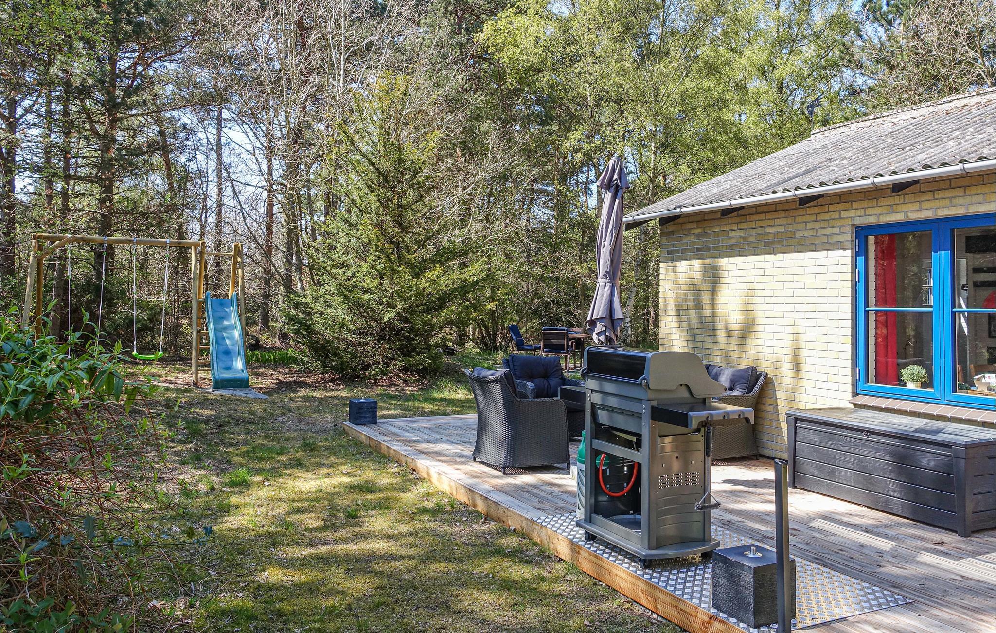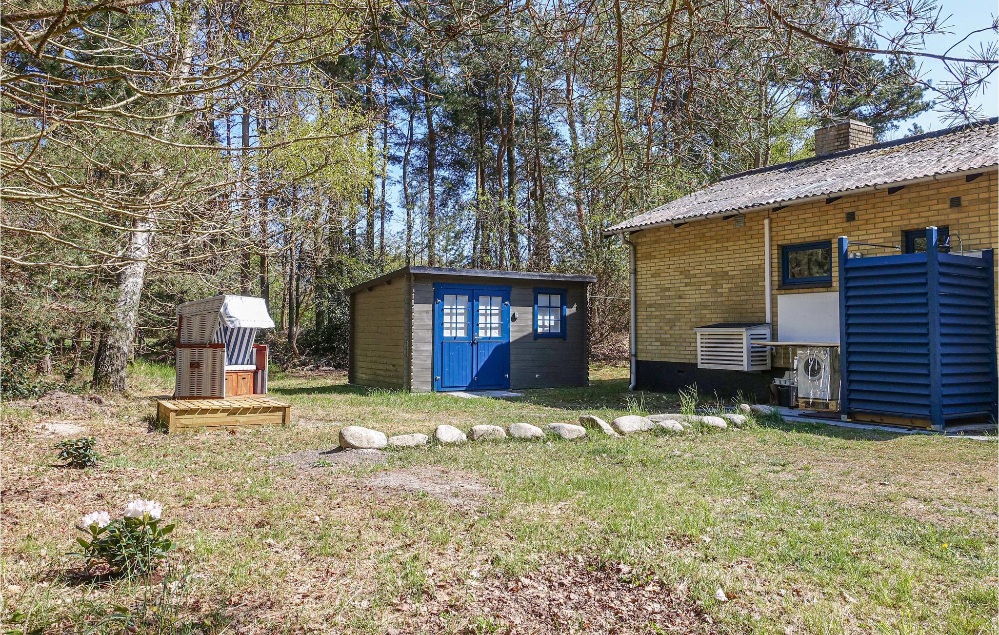 Til huset hører en dejlig træterrasse med havemøbler, grill og markise, hvor I kan nyde solen og tilberede lækre grillretter. Huset har yderligere en terrasse med morgensol - det perfekte sted til morgenkaffen. Der er også et halvtag med vaskemaskine, et udebryggers og en udendørsbruser, som er perfekt til afkøling på varme sommerdage, eller når I vender hjem fra en strandtur. Disse faciliteter kan ikke benyttes fra 1. november til 1. april på grund af vintervejr. Der er også et shelter som kan benyttes til udendørs overnatning eller til en frokost i det grønne, idet shelteret er forsynet med et spisebord.