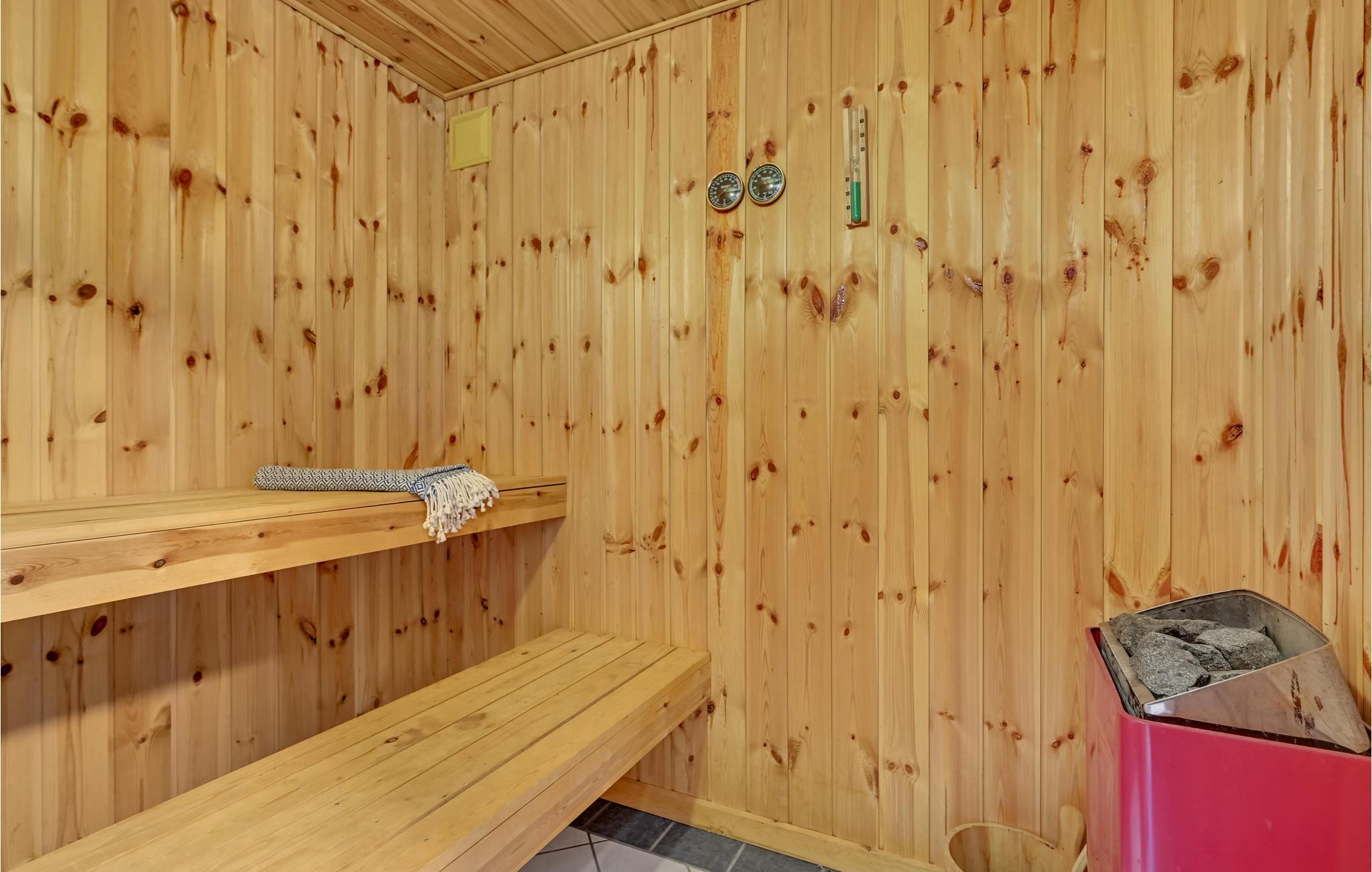 Her er der god plads og helt igennem skønne rammer til den store familie. Nyd hyggestunderne sammen i det store, lyse opholdsrum, som kombinerer køkken, spisestue og dagligstue og derfor fyldes med alverdens aktiviteter i løbet af dagen. Mens børnene kan kaste sig over legetøjet og børnebøgerne, kan I læne jer tilbage i spabadet eller glemme alt om hverdagens travle program i saunaen. Den afskærmede terrasse bliver jeres foretrukne sted at tilbringe de lyse sommeraftener, hvor I sikkert helst vil sidde ude i solen og grille. Når mørket falder på, kan I samles omkring bålet og riste skumfiduser eller bage snobrød.