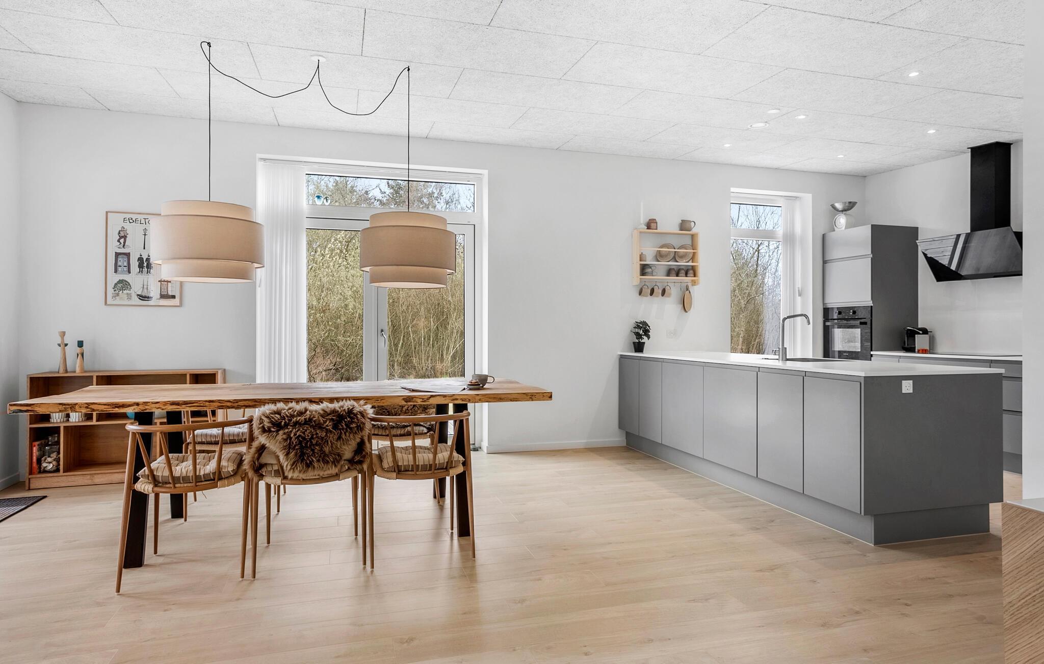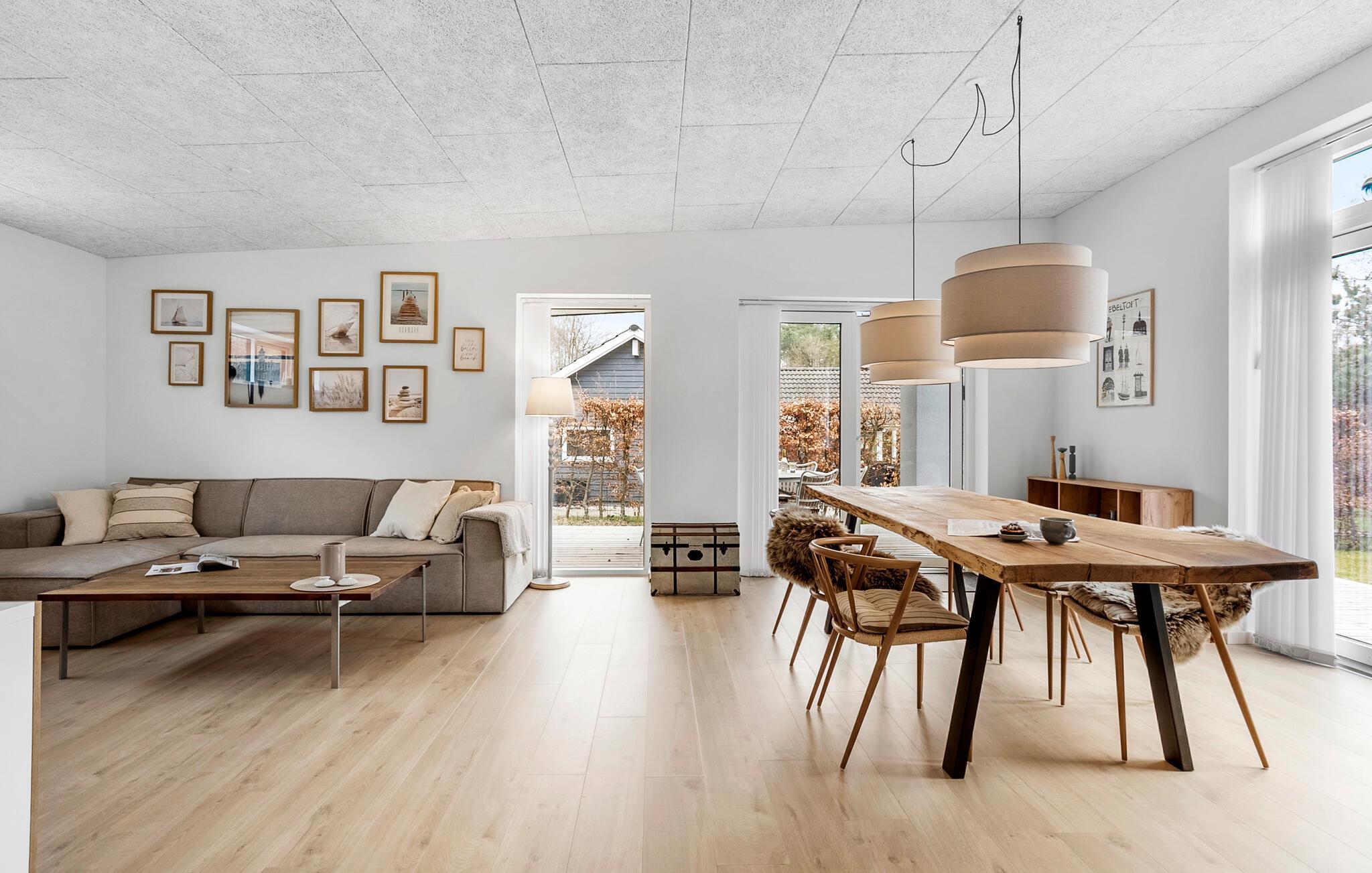 Velkommen til dette indbydende sommerhus, hvor bløde farver og naturlige materialer skaber en harmonisk atmosfære. Skab lækre måltider i køkkenet af høj kvalitet og Hold dem ved det stilfulde spisebord med udsigt til det grønne. Slap af i den komfortable sofa og glæd jer til hyggelige aftener med fjernsyn eller afslappende timer med læsning.