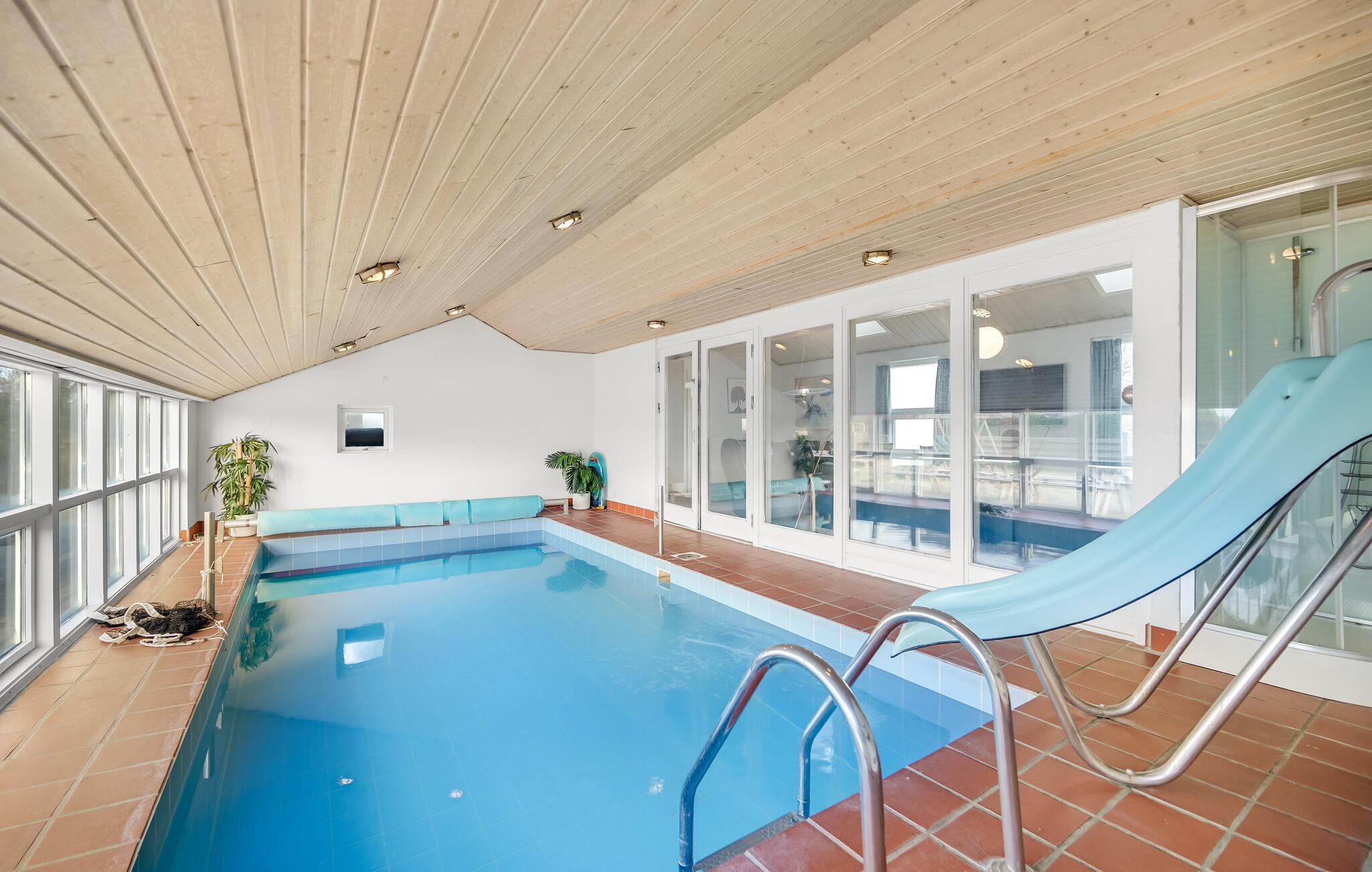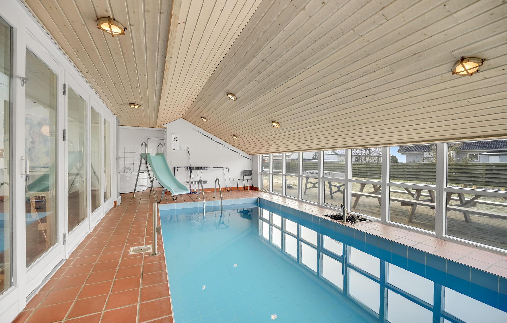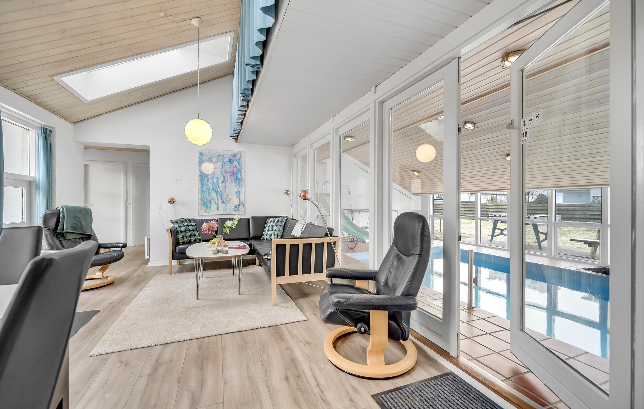 Rummeligt feriehus nær Vibæk Strand med pool, sauna og indhegnet have til aktive familier.