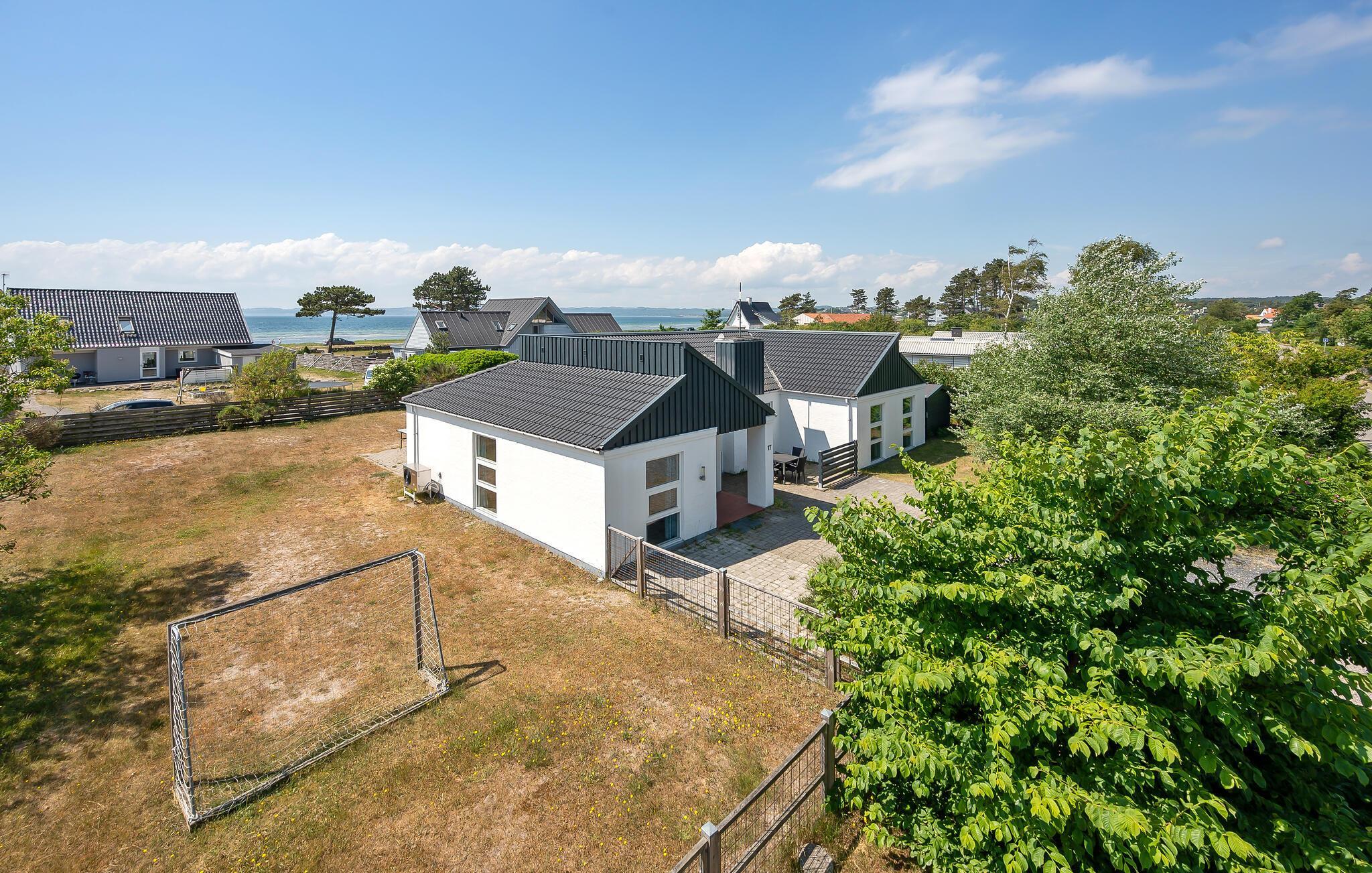 På alle årstider kan dette feriehus opfylde de fleste gæsters betingelser for et dejligt ferieophold for hele familien. Det er godt indrettet til to familier. Fra stuen, som er centralt placeret i huset, er der udsyn og adgang til poolområdet, så I kan følge med i de vandglades aktiviteter og leg i bassinet. Udendørs er der to gode terrasser og masser af plads til leg og boldspil, grunde er indhegnet så hunden kan frit løbe rundt. Huset er ekstra energivenligt med pillebrændeovn og varmepumper til poolen. Desuden kan I skimte havet. Det ligger i et roligt og populært område få hundrede meter fra stranden og i gåafstand til Ebeltoft by med de gamle gader, caféer, spisesteder og shoppingmuligheder. Sovepladserne på hemsen er mest velegnet til børn ( madrasser er 70 x 180 ).