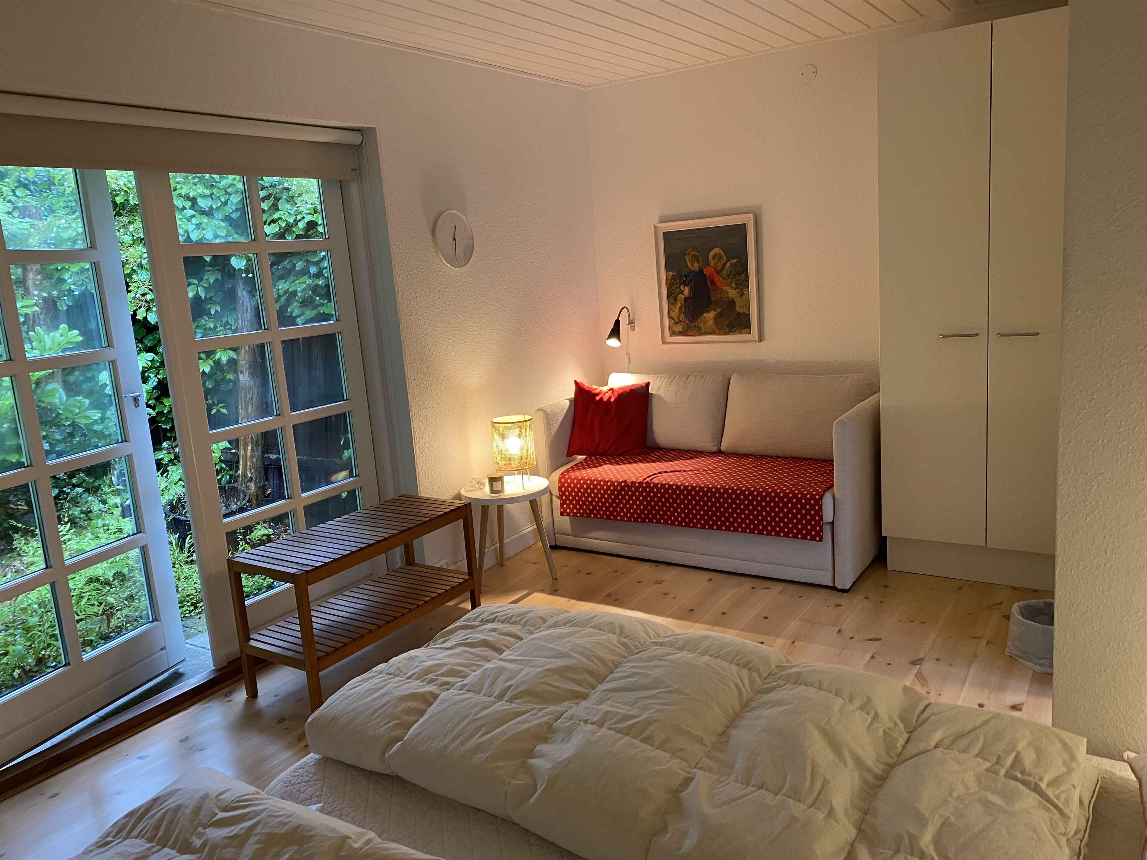 Idyllisk beliggende træhus ved skov og sø