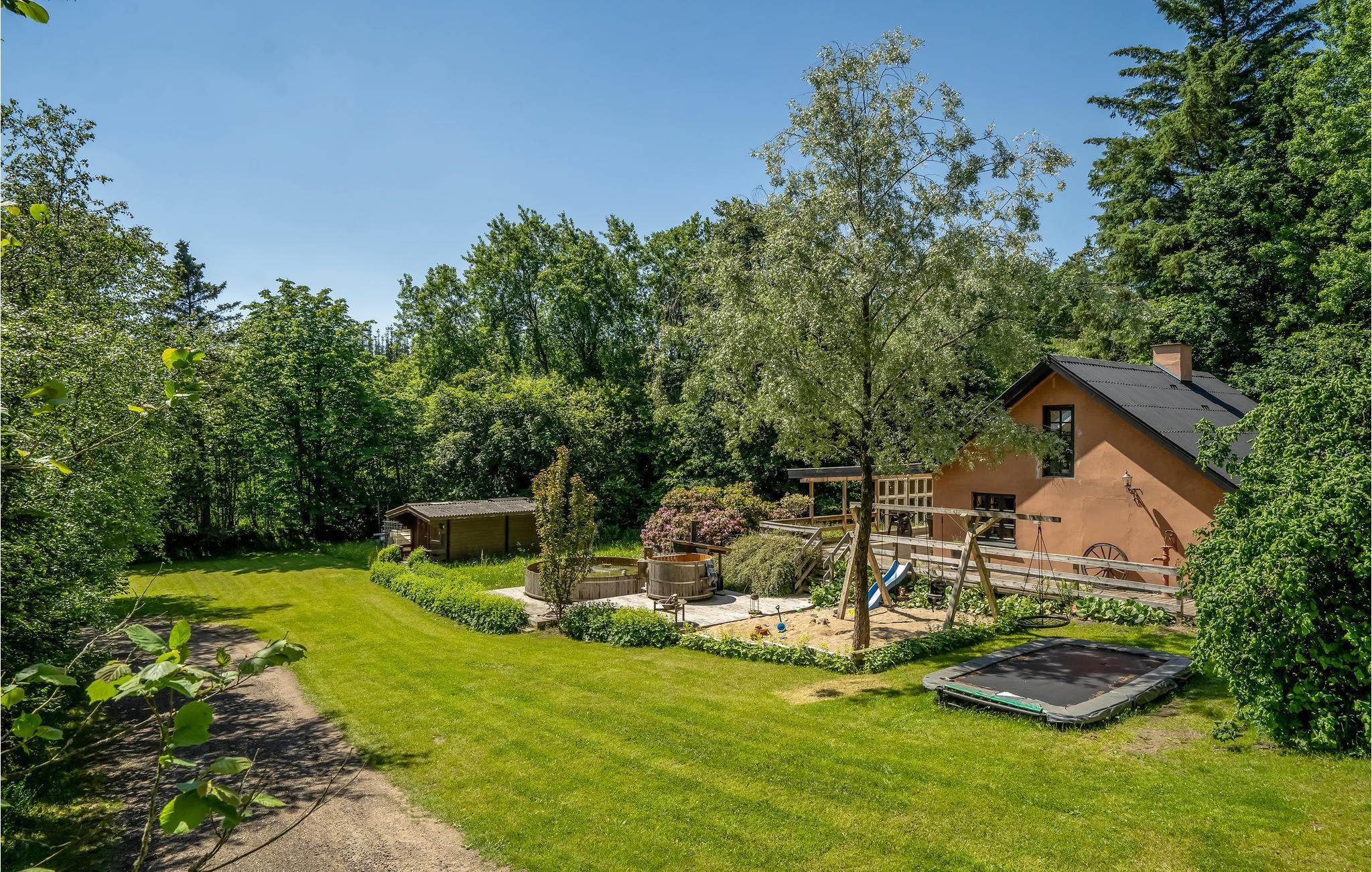 Haven er en skøn oase med mange områder og velordnede bede, så her kan I virkelig nyde alle solskinstimerne. Sæt jer med en kold forfriskning, mens børnene leger på legestativerne og trampolinen. Hvis I vil gøre noget godt for jer selv, kan I sætte jer godt til rette i vildmarksbadet efter en lang dag på farten, og måske er I så heldige, at hjortene lægger vejen forbi ved daggry eller skumringstid. Vildmarksbadet opvarmes med diesel, som kan tilkøbes i huset.