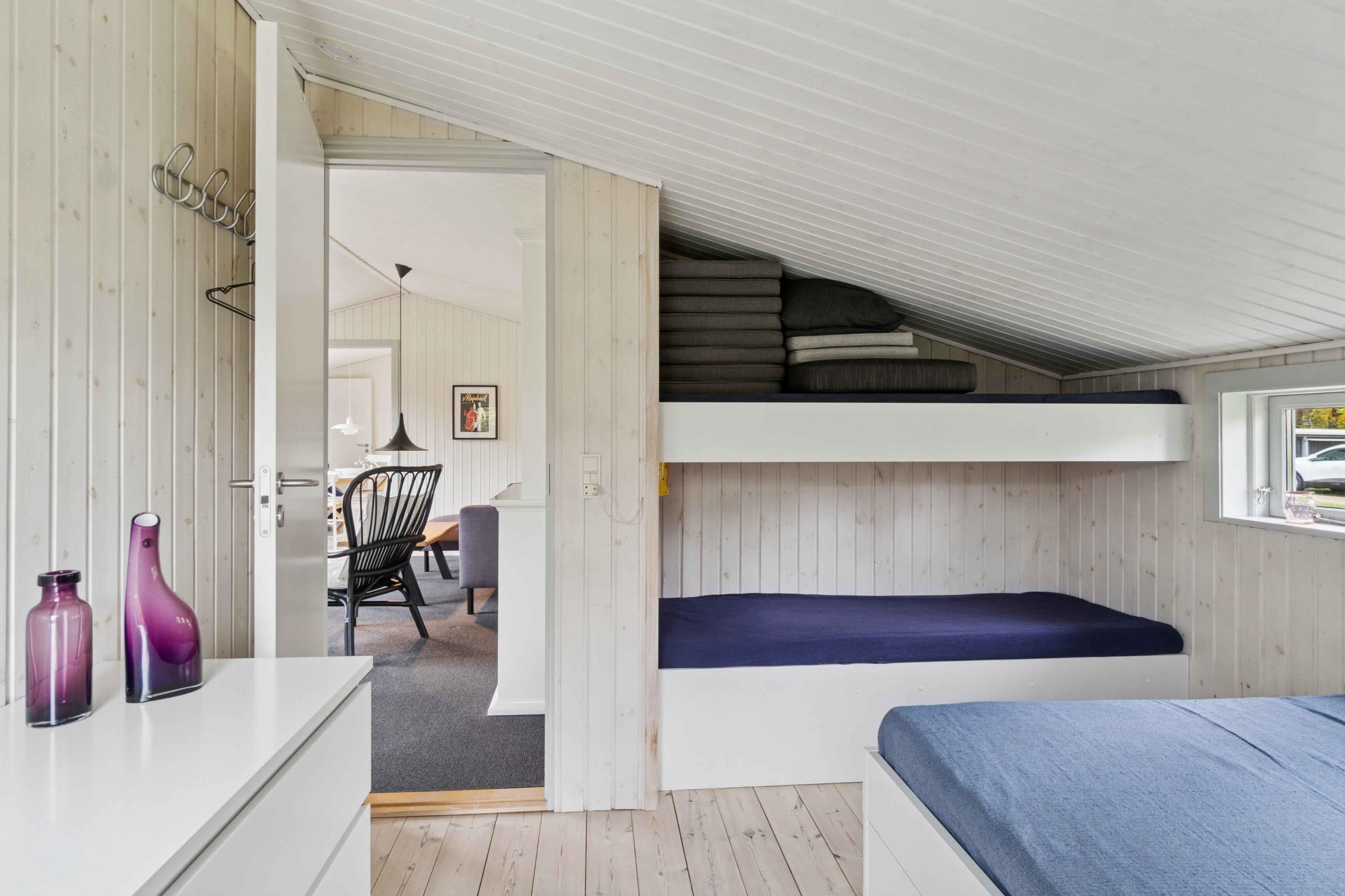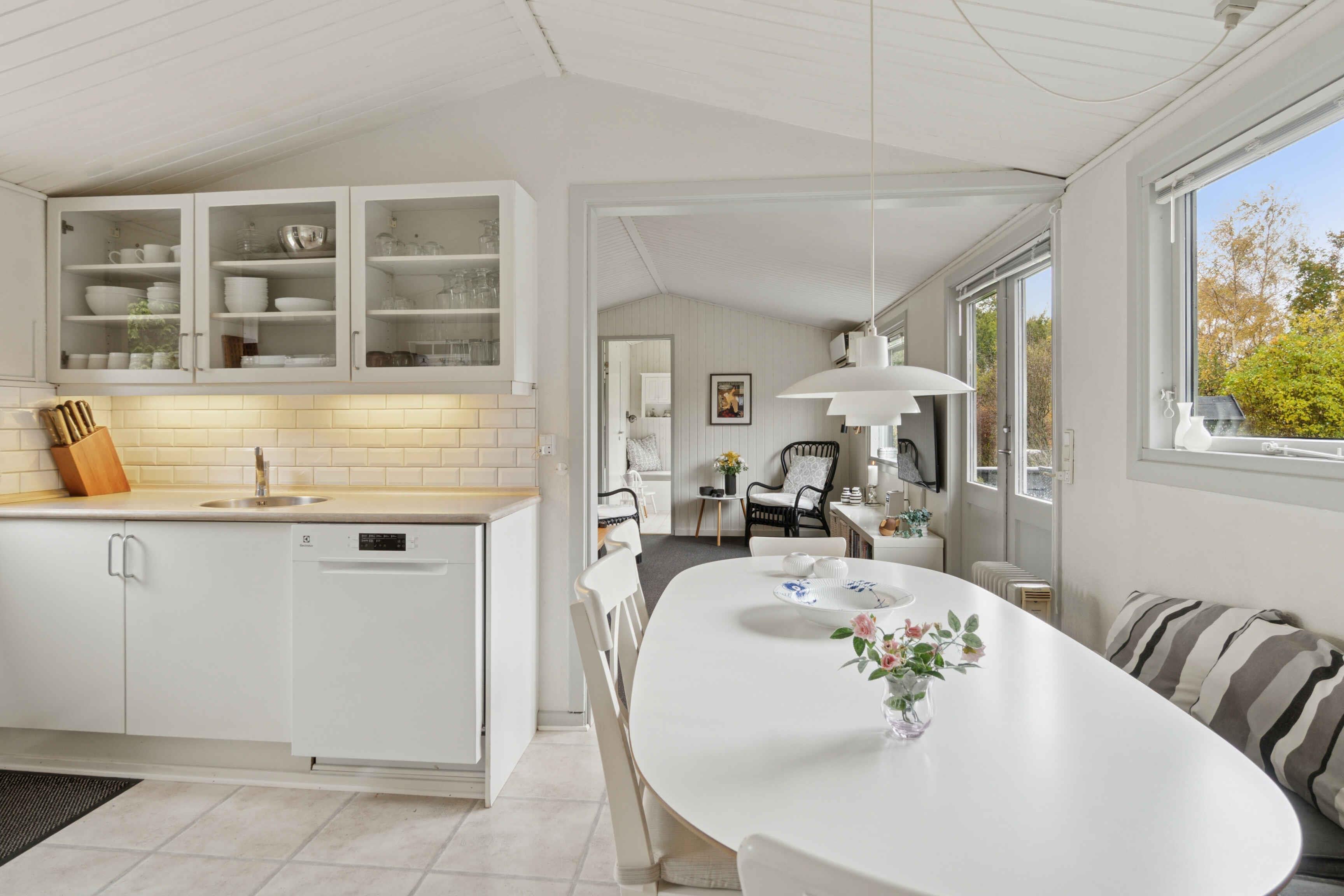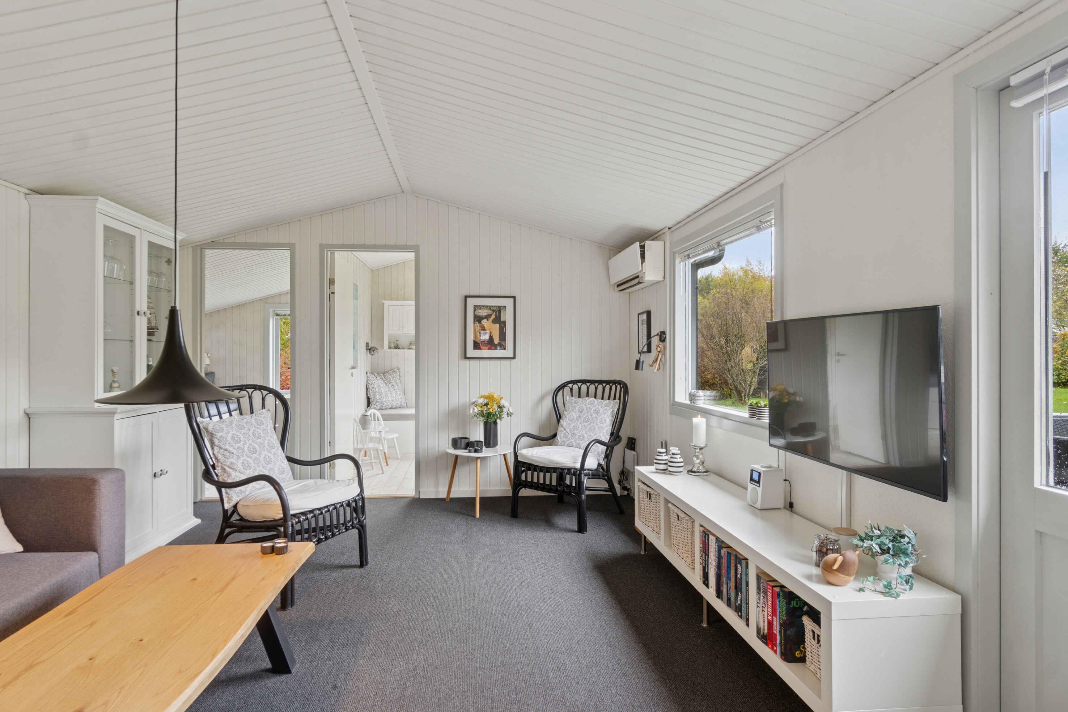 Velkommen til et lyst sommerhus på 75 m² i klassisk sommerhusstil – skabt til afslapning, nærvær og ferie uden stress. Her er plads til 7 personer i 3 soveværelser, og rammerne passer perfekt til både familieferie og et par dage med venner. Indenfor mødes I af store vinduespartier, der giver et behageligt lys hele dagen. Indretningen er enkel og funktionel, så I hurtigt føler jer hjemme og kan nyde ferien fra første stund. Sovepladserne er fordelt på tre værelser: ét med dobbeltseng (180 cm), ét med dobbeltseng (140 cm) og en enkeltseng (80 cm), samt et tredje værelse med to enkeltsenge (80 cm). Her er god plads, uanset om I rejser som par eller som familie. Udelivet bliver hurtigt en naturlig del af opholdet. Huset har to store træterrasser, hvor I kan nyde dagens måltider, solen og de lange aftener. Den store grund og græsplæne giver god plads til leg, spil og afslapning i grønne omgivelser. I haven ligger også et shelter, som giver mulighed for en nat under åben himmel eller som et hyggeligt sted at trække ud. Fra 1. marts er både udesauna og vildmarksbad tilgængeligt, så I kan runde dagen af med varme og ro – året rundt. Det gør huset oplagt til både sommerferie og weekendture i de køligere måneder. Området omkring huset er en af Odsherreds store styrker. Her er kort afstand til gode badestrande, rolige kyststrækninger og natur, der indbyder til cykelture og gåture. I kan besøge hyggelige havne, lokale gårdbutikker og små byer med caféer og isboder. Geopark Odsherred byder på smukke landskaber formet af istiden og oplevelser for både børn og voksne. Der er også gode muligheder for fiskeri, kunst og lokale madoplevelser i området. Alle er velkomne – så længe omgivelserne respekteres, og sommerhuset behandles, som var det jeres eget.
