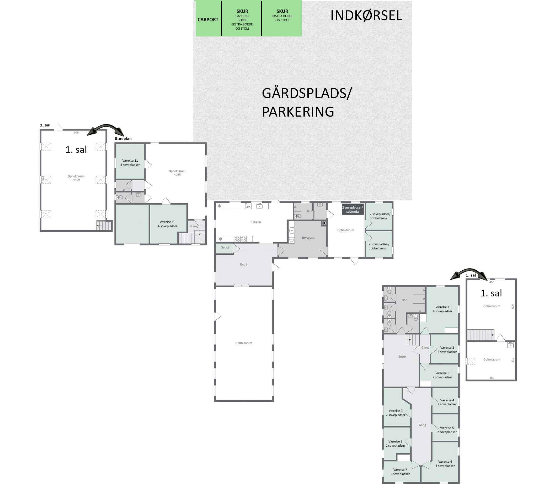 Velkommen til 'Solgaarden' – et 500 m² sommerhus i Vig Lyng, Odsherred, kun 500 m fra Høve Strand. Tre huse, 13 soveværelser og 26 sovepladser. Nærhed til Sommerland Sjælland og naturskønne områder.
