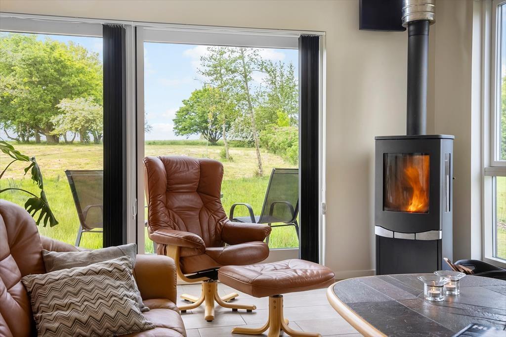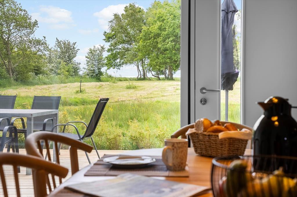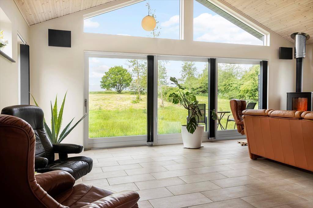 Selvom det er fristende at tage feriedagene i helt roligt tempo inden døre i sommerhuset, får du sikkert også lyst til at rykke ud i det fri, når solen står højt på himlen. Terrassemiljøet måler hele 60 m2, så der er flere opholdspladser at vælge imellem, og takket være de gode havemøbler og liggestole, skal du nok få det komfortabelt, når du læner dig tilbage med en kølig forfriskning ved din side. Naturgrunden er med sine 2992 m2 dejligt stor, så I har masser af plads til leg, hygge og boldspil, og det åbne landskab ud mod fjordkysten er med til at understrege fornemmelsen af ro og afslapning.