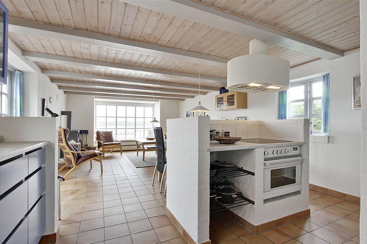 Køkkenet er udstyret med 1 køleskab. Der er 4 keramiske kogeplader, varmluftovn samt opvaskemaskine.