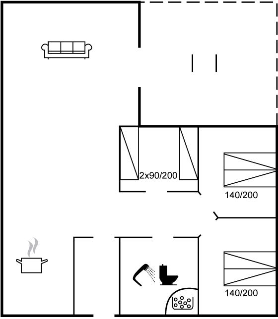 Der er i alt 3 soveværelser. Sovepladserne fordeler sig på: 4 sovepladser i dobbeltsenge. 2 sovepladser i enkeltsenge.