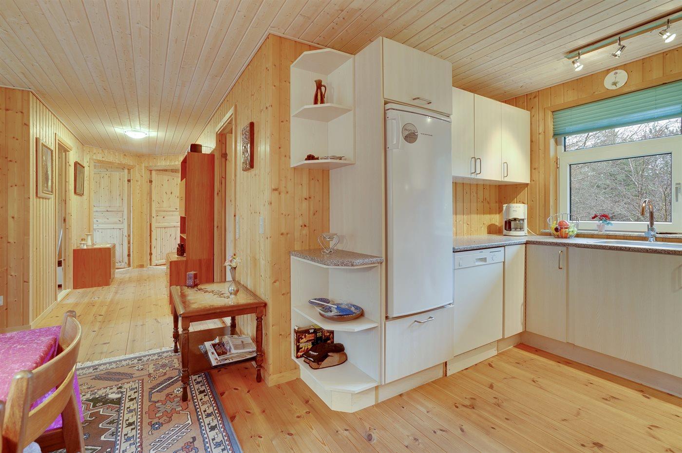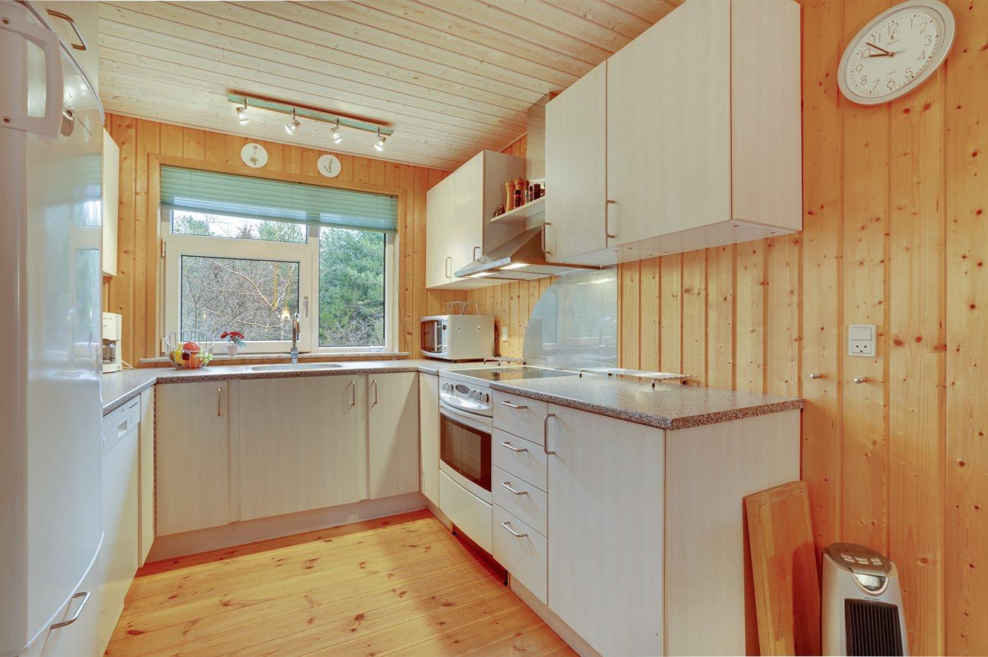 Køkkenet er udstyret med 1 køleskab. Der er 4 keramiske kogeplader, varmluftovn, mikrobølgeovn samt opvaskemaskine.